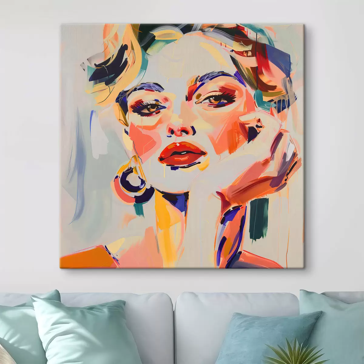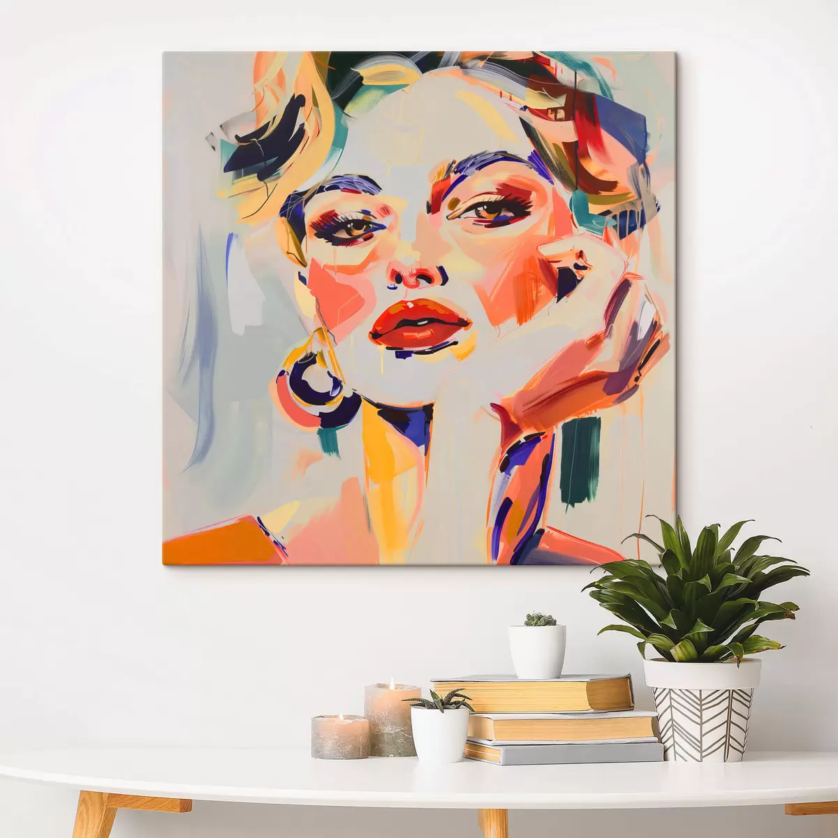 Wandbilder Porträt einer Frau mit mehrfarbigen Strichen Art. s42111