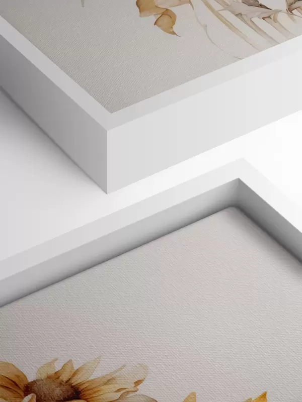 Drei Materialtypen stehen zur Verfügung: Economic Canvas - ein dichtes und haltbares Material für den Digitaldruck, identisch mit Malerleinwand, wasserfeste Oberfläche, realistische Wiedergabe von Details, mittelkörniges Material. Premium Canvas - die Textur ähnelt der einer Malerleinwand (verwobene kleine Fäden). Weiche, detaillierte Wiedergabe des Bildes auf einer matten Oberfläche. Eco-Premium - hochwertiges Gewebe aus 100% Baumwolle. Dank der natürlichen Baumwollfasern ist das Material langlebig und verschleißfest. Hervorragende Farbwiedergabe und Detailtreue.