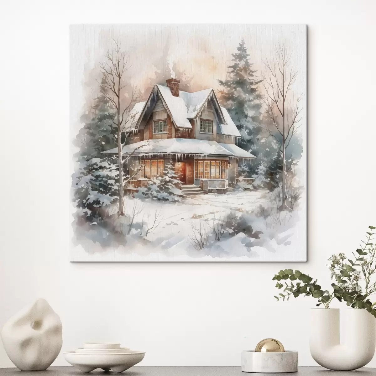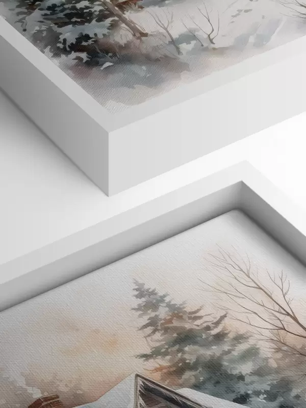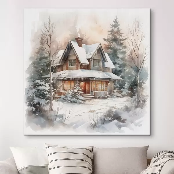 Wandbilder Haus in einem verschneiten Wald Nachahmung von Aquarell Art. s42137
