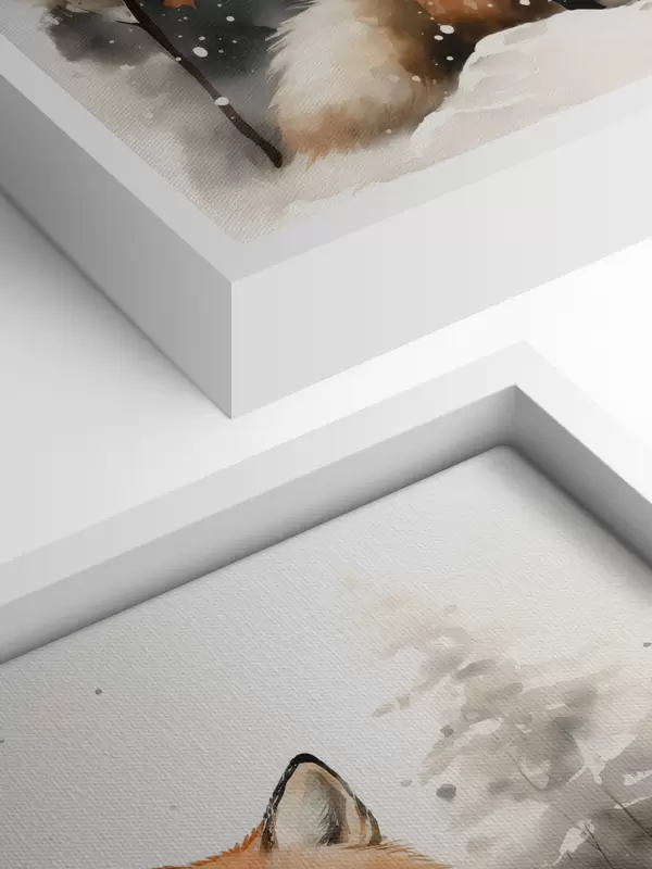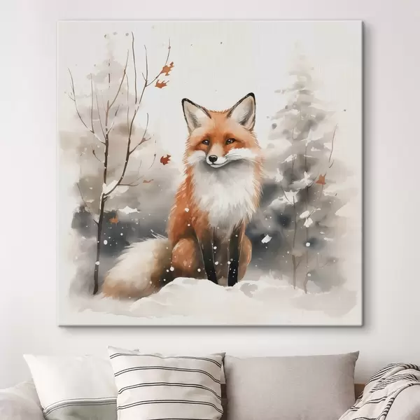 Wandbilder Fuchsjunges in einem verschneiten Wald Nachahmung von Aquarell Art. s42146