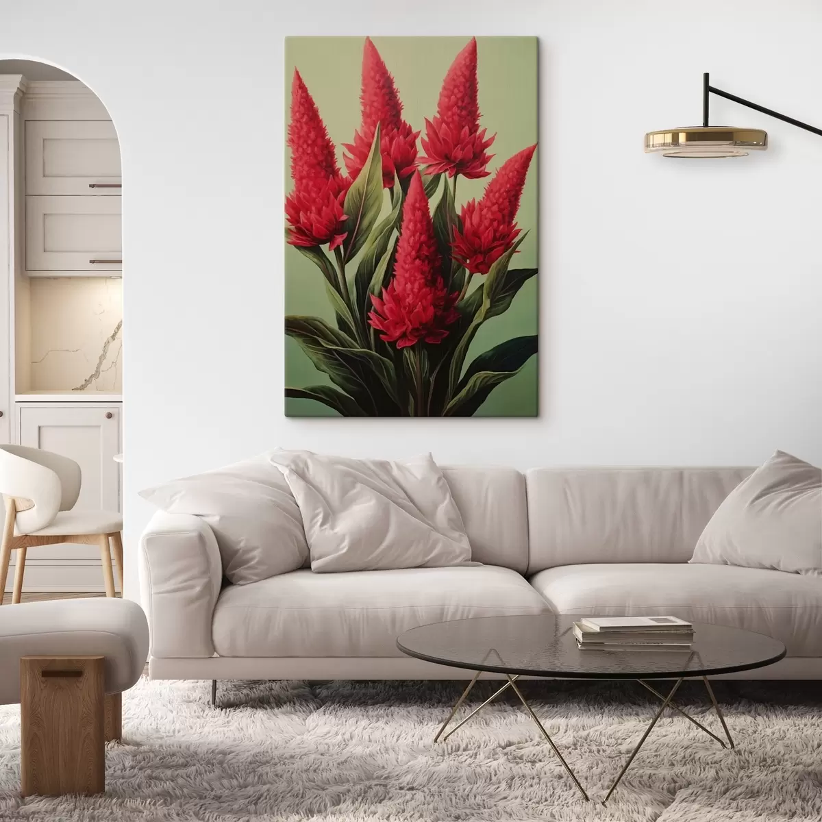 Wandbilder Rote Blumen auf grünem Hintergrund Art. s42166