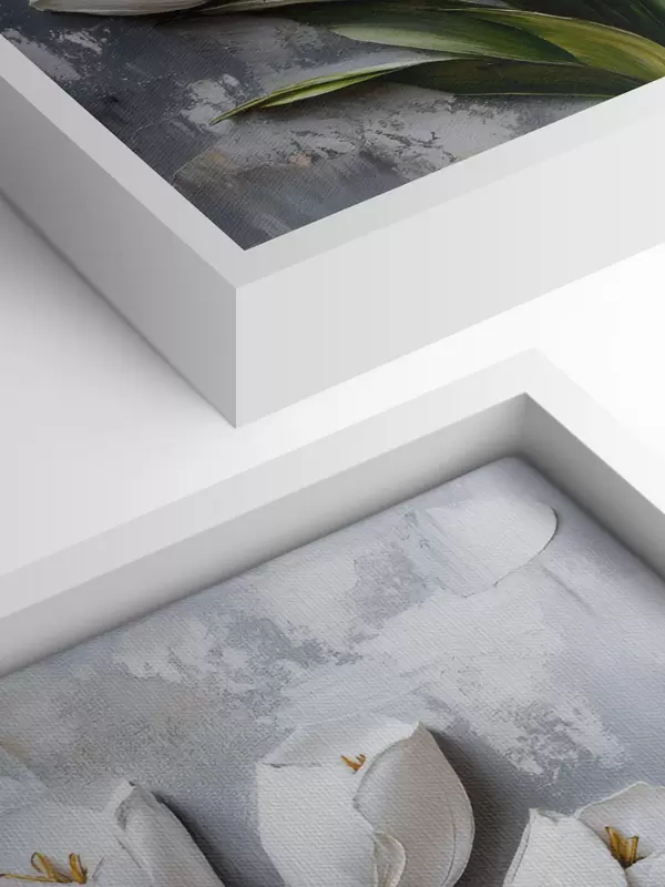 Drei Materialtypen stehen zur Verfügung: Economic Canvas - ein dichtes und haltbares Material für den Digitaldruck, identisch mit Malerleinwand, wasserfeste Oberfläche, realistische Wiedergabe von Details, mittelkörniges Material. Premium Canvas - die Textur ähnelt der einer Malerleinwand (verwobene kleine Fäden). Weiche, detaillierte Wiedergabe des Bildes auf einer matten Oberfläche. Eco-Premium - hochwertiges Gewebe aus 100% Baumwolle. Dank der natürlichen Baumwollfasern ist das Material langlebig und verschleißfest. Hervorragende Farbwiedergabe und Detailtreue.