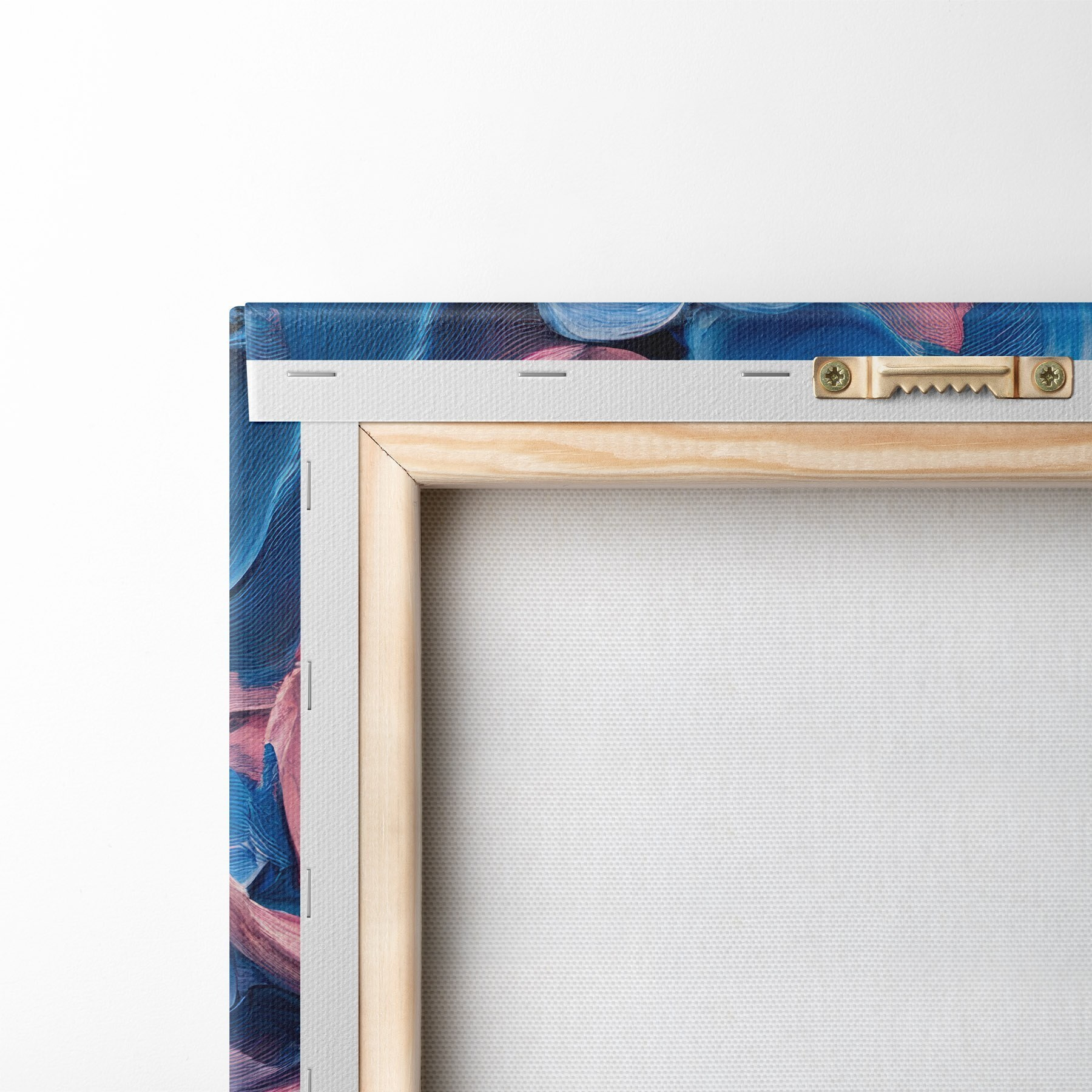 Um die Leinwand auf Keilrahmen zu spannen, ohne das Bild zu beschädigen, verwenden wir ein gespiegeltes Bild.