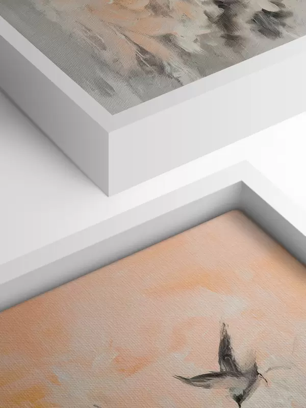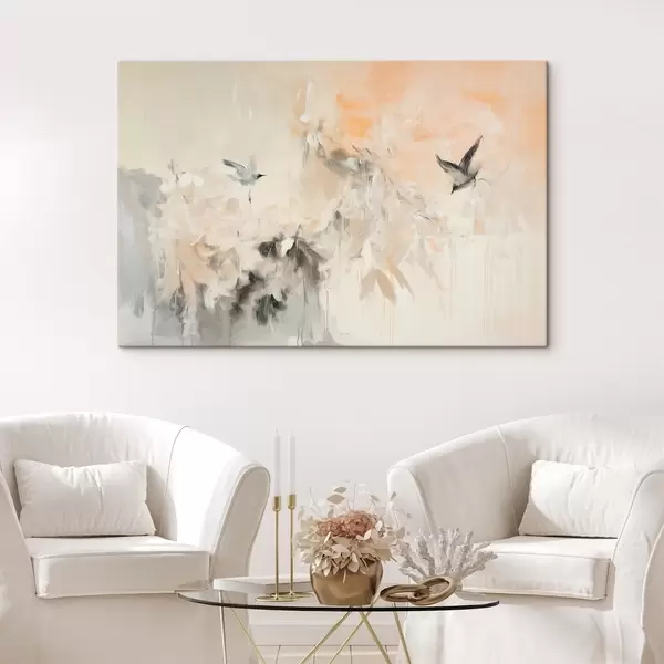 Wandbilder Abstraktion mit fliegenden Vögeln, Acryl-Stil, rosa und beige Farben Art. s42205
