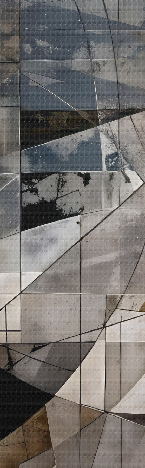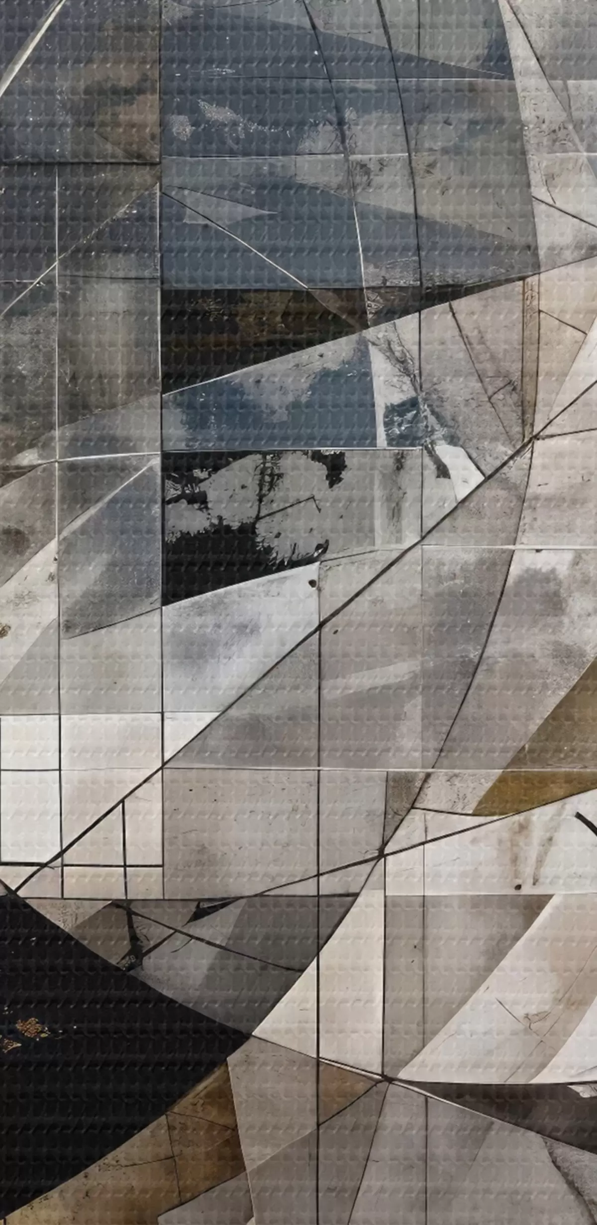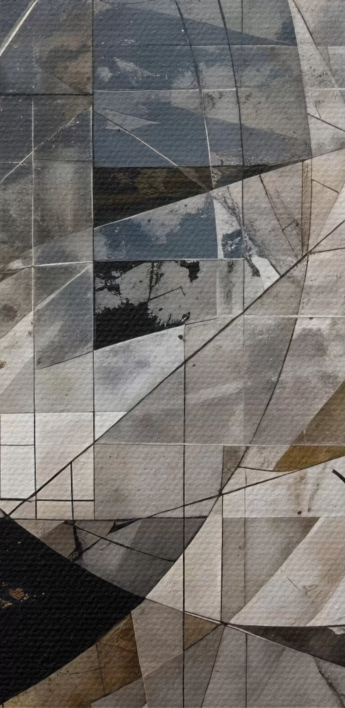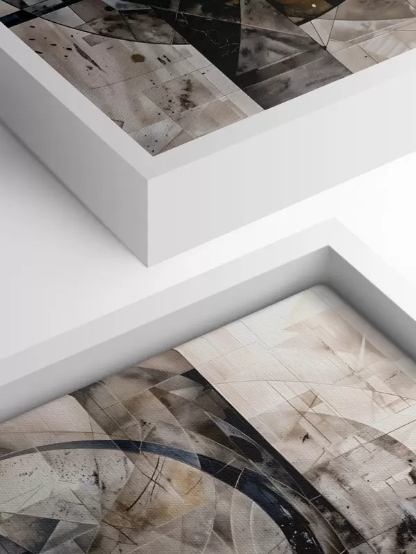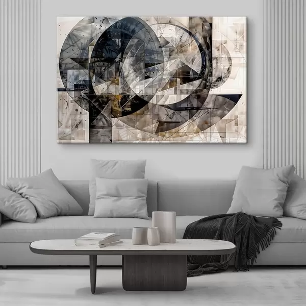 Wandbilder Eine abstrakte moderne geometrische Komposition mit sich überschneidenden Formen und Druck in Grau-, Schwarz- und Beigetönen Art. s42212