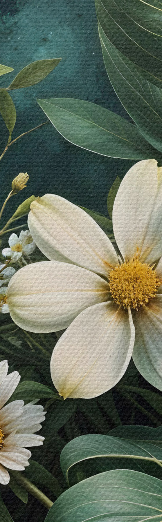 Drei Materialtypen stehen zur Verfügung: Economic Canvas - ein dichtes und haltbares Material für den Digitaldruck, identisch mit Malerleinwand, wasserfeste Oberfläche, realistische Wiedergabe von Details, mittelkörniges Material. Premium Canvas - die Textur ähnelt der einer Malerleinwand (verwobene kleine Fäden). Weiche, detaillierte Wiedergabe des Bildes auf einer matten Oberfläche. Eco-Premium - hochwertiges Gewebe aus 100% Baumwolle. Dank der natürlichen Baumwollfasern ist das Material langlebig und verschleißfest. Hervorragende Farbwiedergabe und Detailtreue.