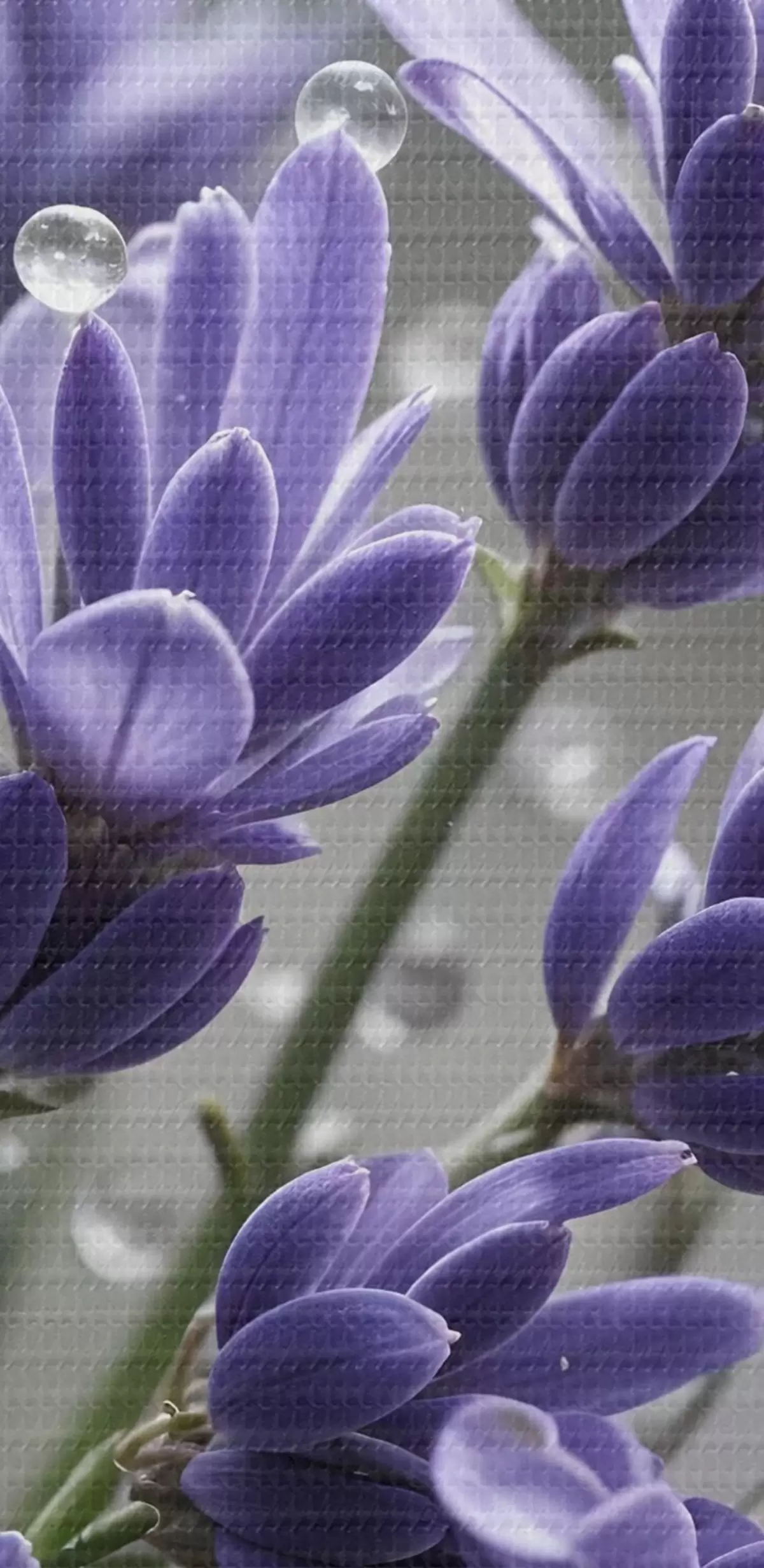 Wandbilder Lila Lavendelblüten mit Wassertropfen auf den Blütenblättern, vor einem unscharfen Hintergrund s42229