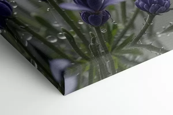 Wandbilder Lila Lavendelblüten mit Wassertropfen auf den Blütenblättern, vor einem unscharfen Hintergrund s42229
