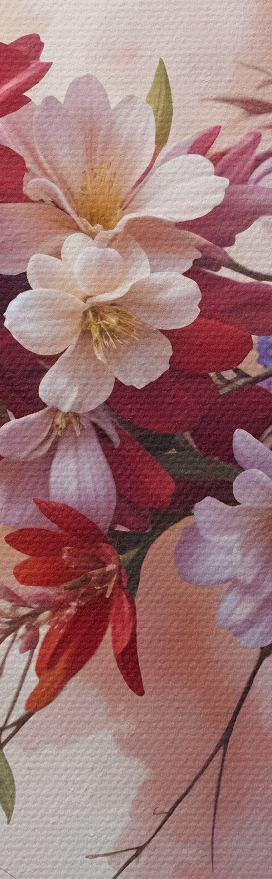 Drei Materialtypen stehen zur Verfügung: Economic Canvas - ein dichtes und haltbares Material für den Digitaldruck, identisch mit Malerleinwand, wasserfeste Oberfläche, realistische Wiedergabe von Details, mittelkörniges Material. Premium Canvas - die Textur ähnelt der einer Malerleinwand (verwobene kleine Fäden). Weiche, detaillierte Wiedergabe des Bildes auf einer matten Oberfläche. Eco-Premium - hochwertiges Gewebe aus 100% Baumwolle. Dank der natürlichen Baumwollfasern ist das Material langlebig und verschleißfest. Hervorragende Farbwiedergabe und Detailtreue.