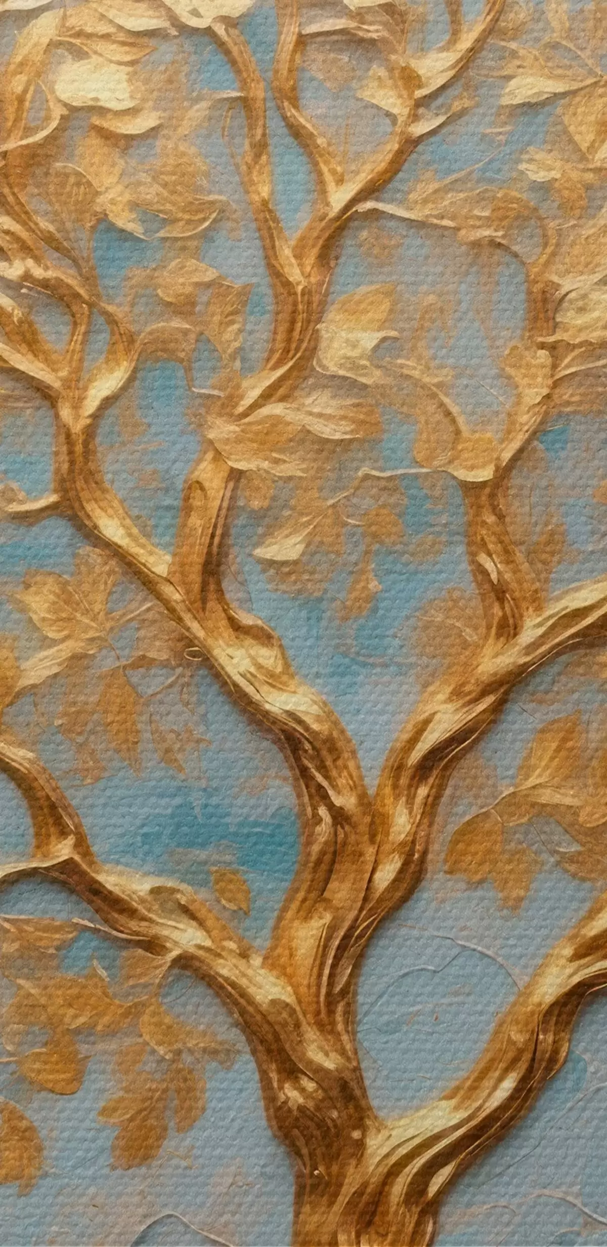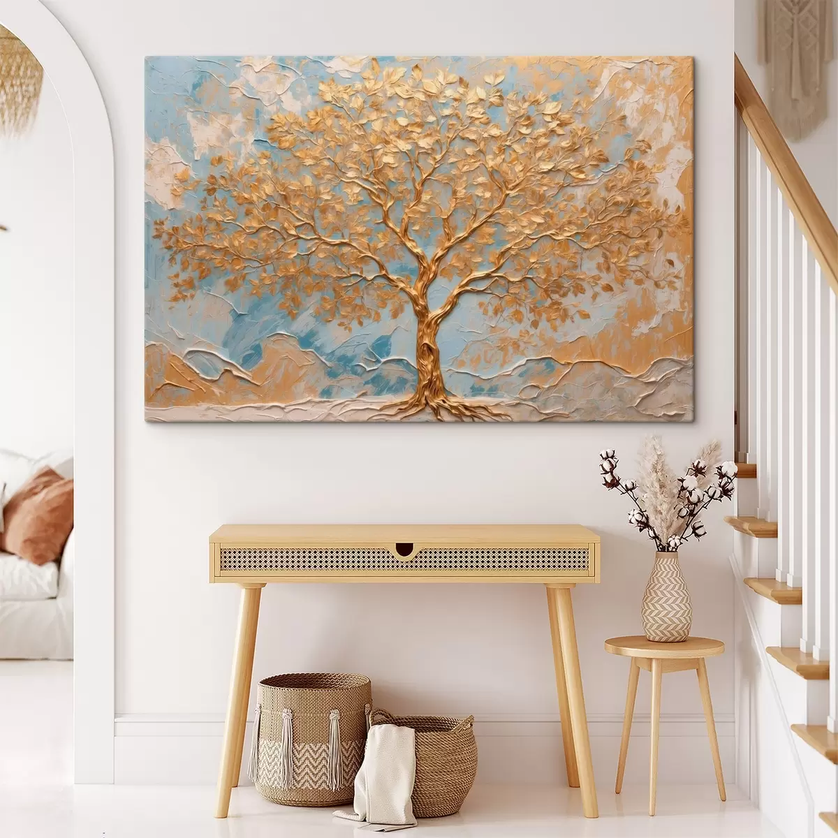 Wandbilder Gelber Baum auf blau-weißem Hintergrund s42266