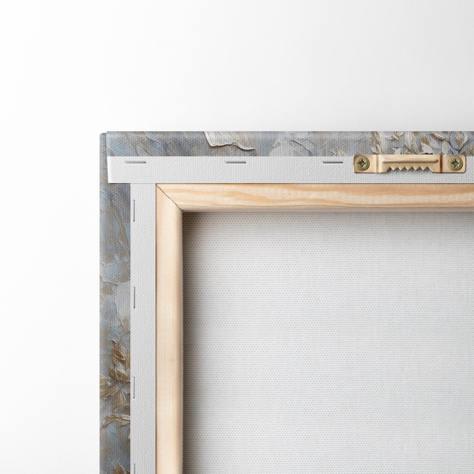 Um die Leinwand auf Keilrahmen zu spannen, ohne das Bild zu beschädigen, verwenden wir ein gespiegeltes Bild.