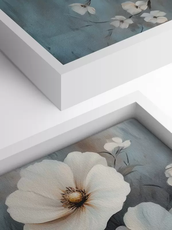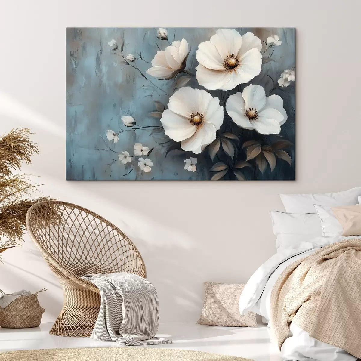Wandbilder Weiße Blumen auf blauem Hintergrund Art. s42319