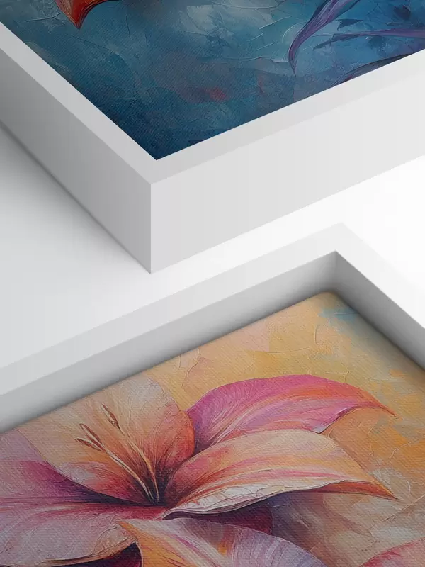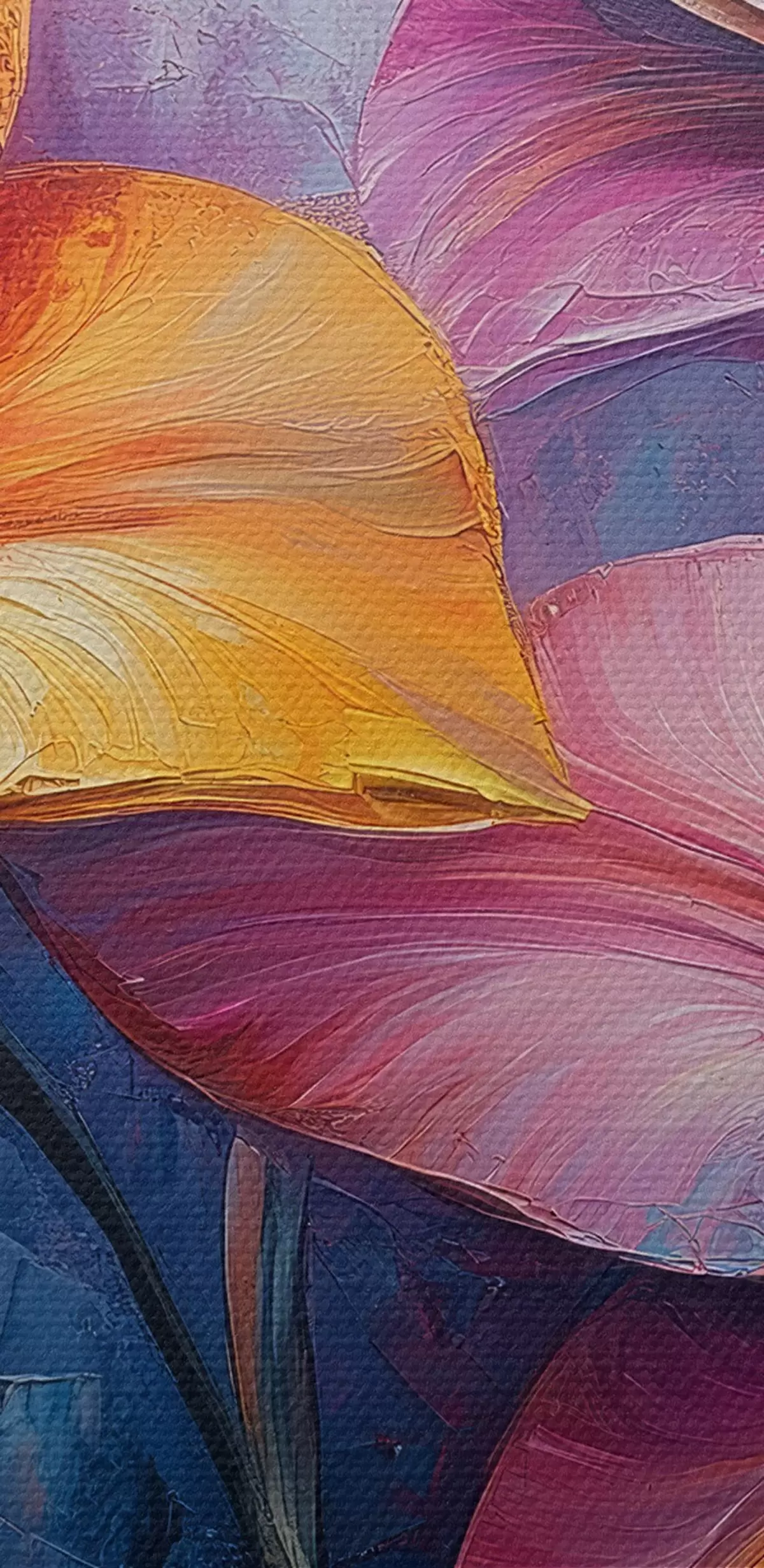 Drei Materialtypen stehen zur Verfügung: Economic Canvas - ein dichtes und haltbares Material für den Digitaldruck, identisch mit Malerleinwand, wasserfeste Oberfläche, realistische Wiedergabe von Details, mittelkörniges Material. Premium Canvas - die Textur ähnelt der einer Malerleinwand (verwobene kleine Fäden). Weiche, detaillierte Wiedergabe des Bildes auf einer matten Oberfläche. Eco-Premium - hochwertiges Gewebe aus 100% Baumwolle. Dank der natürlichen Baumwollfasern ist das Material langlebig und verschleißfest. Hervorragende Farbwiedergabe und Detailtreue.