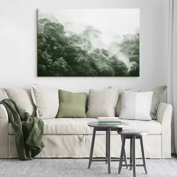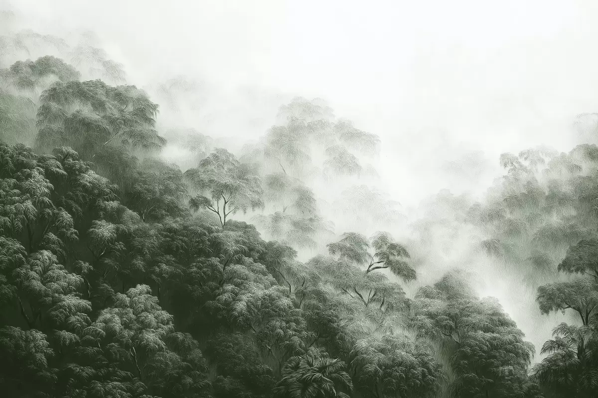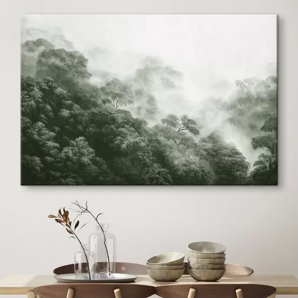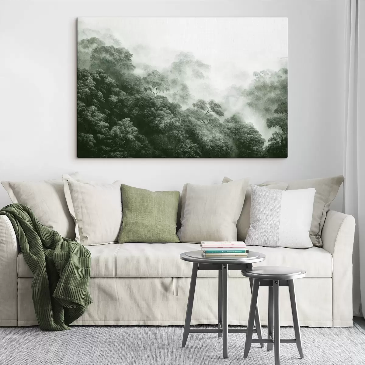 Wandbilder Tropischer Wald im Nebel, Palmen, grüne Farben Art. s42371
