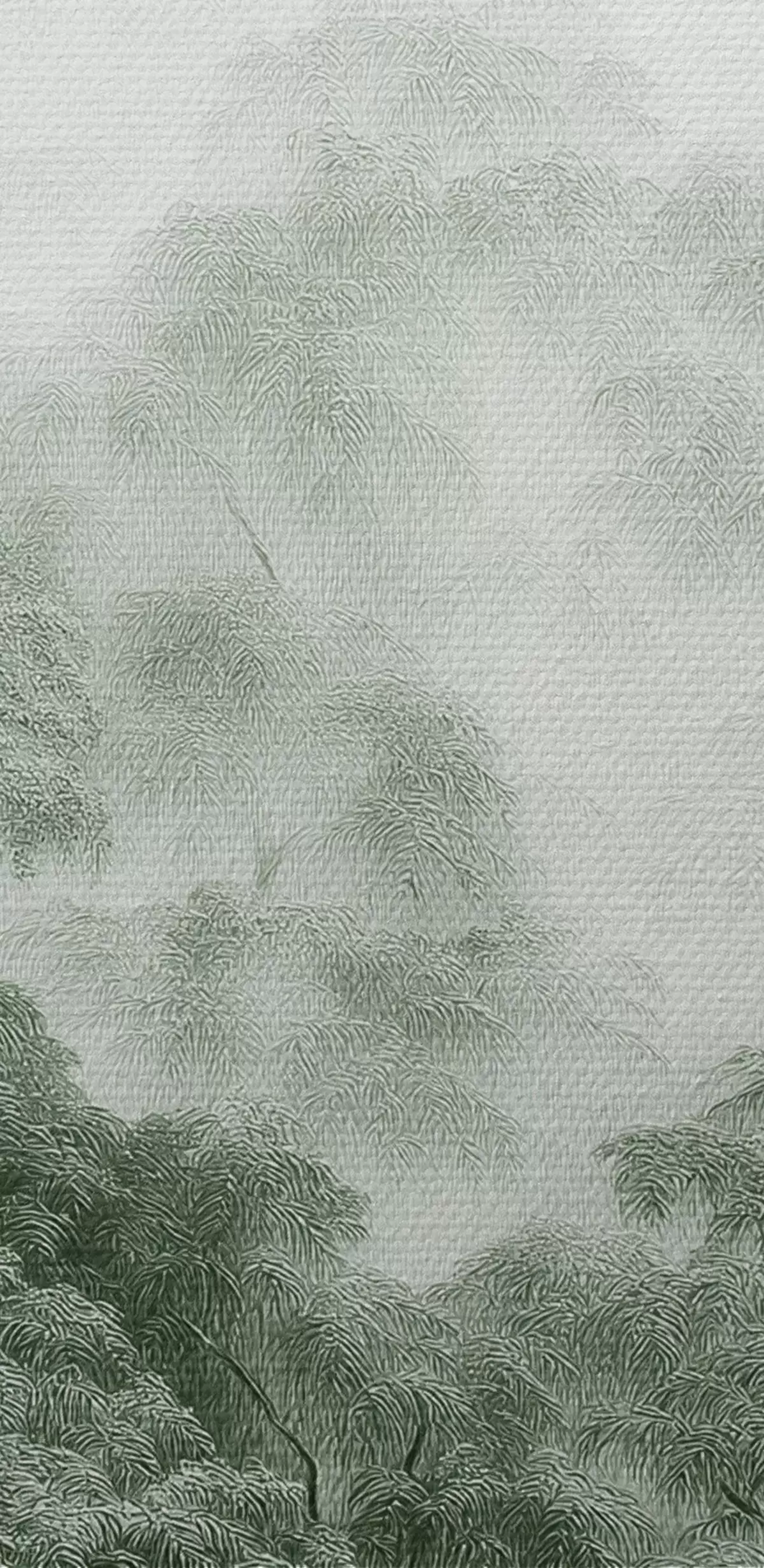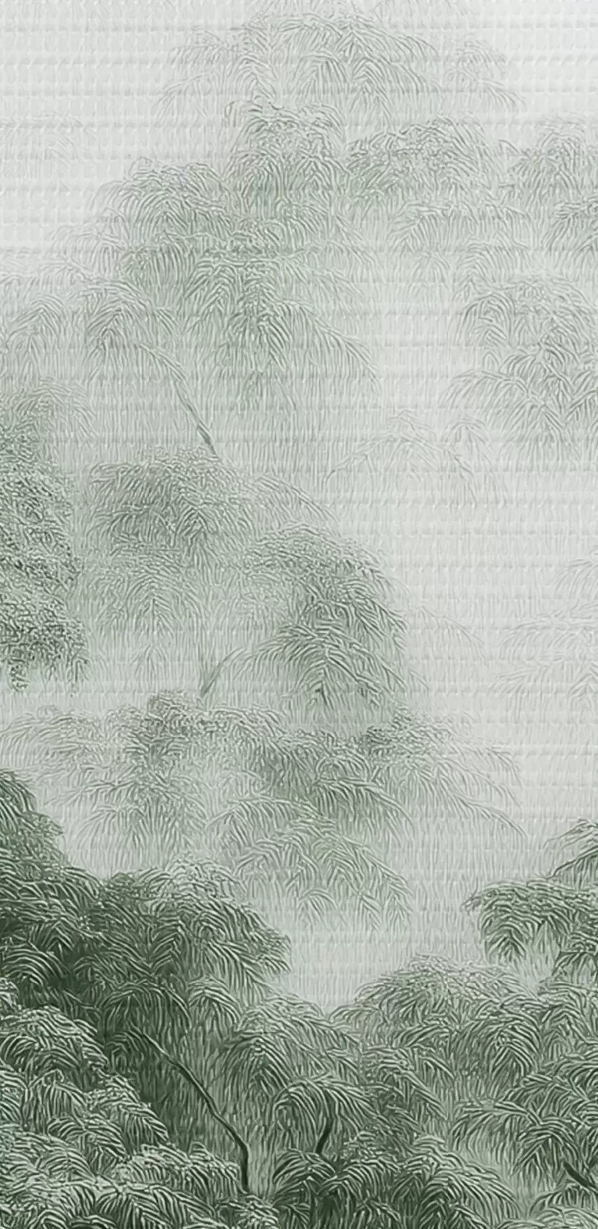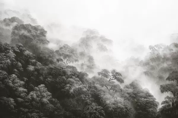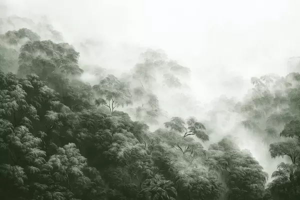 Wandbilder Tropischer Wald im Nebel, Palmen, grüne Farben s42371