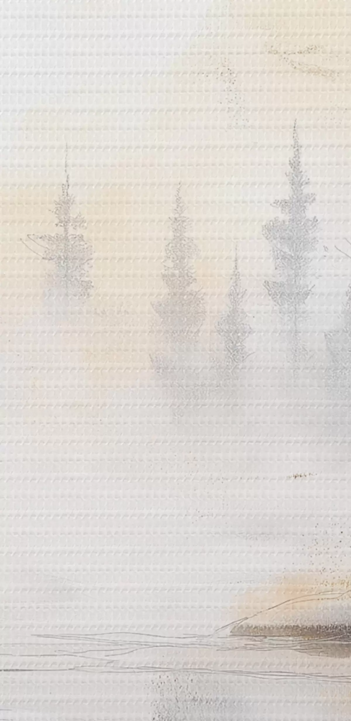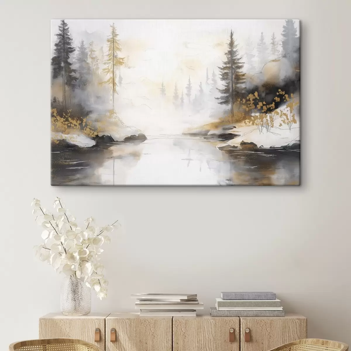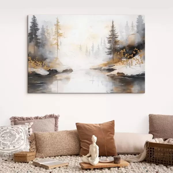 Wandbilder Naturlandschaft mit Fluss, Wald und Kiefern, weiche Pastellfarben Art. s42375