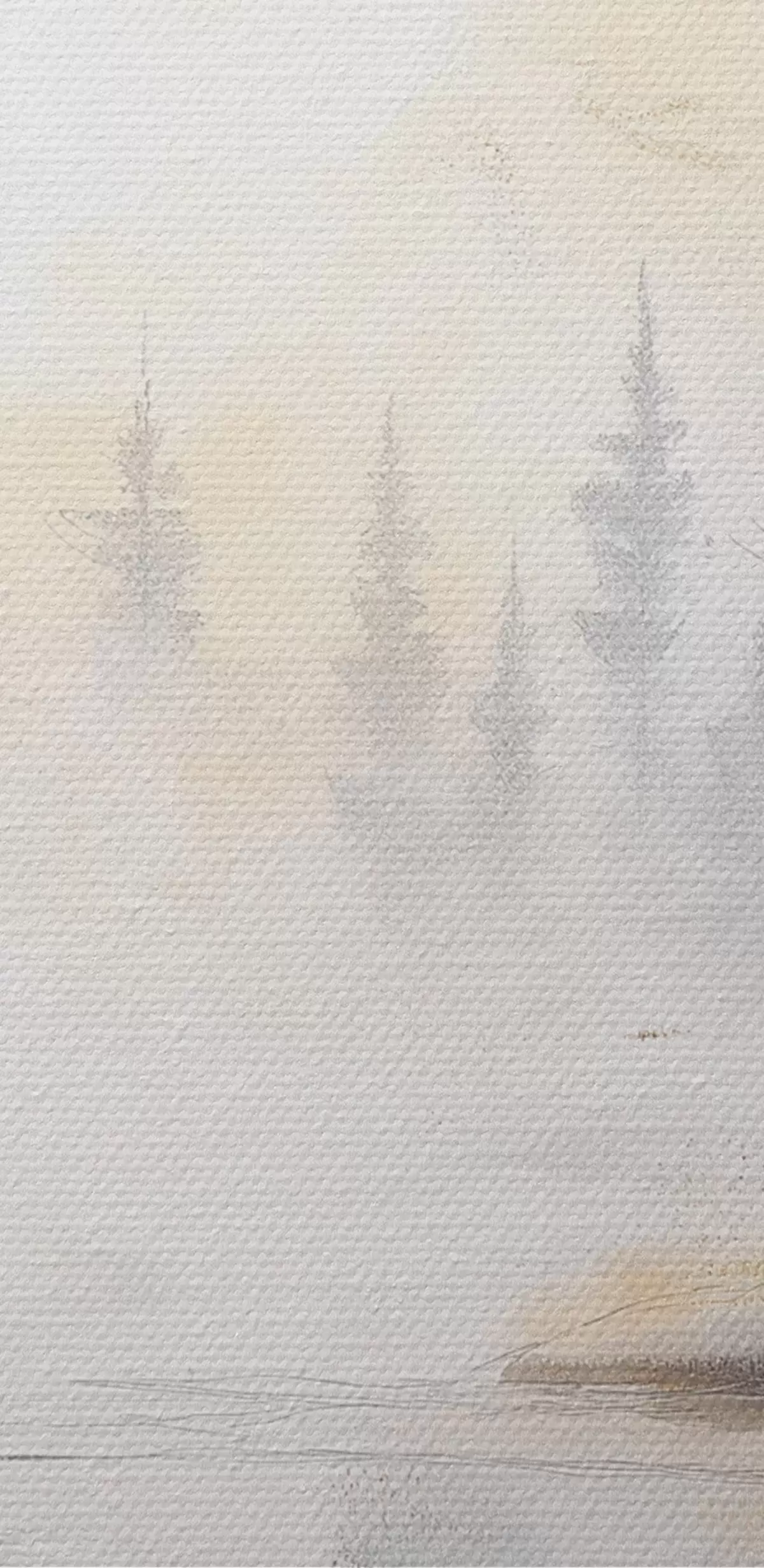 Wandbilder Naturlandschaft mit Fluss, Wald und Kiefern, weiche Pastellfarben s42375