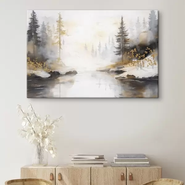 Wandbilder Naturlandschaft mit Fluss, Wald und Kiefern, weiche Pastellfarben Art. s42375