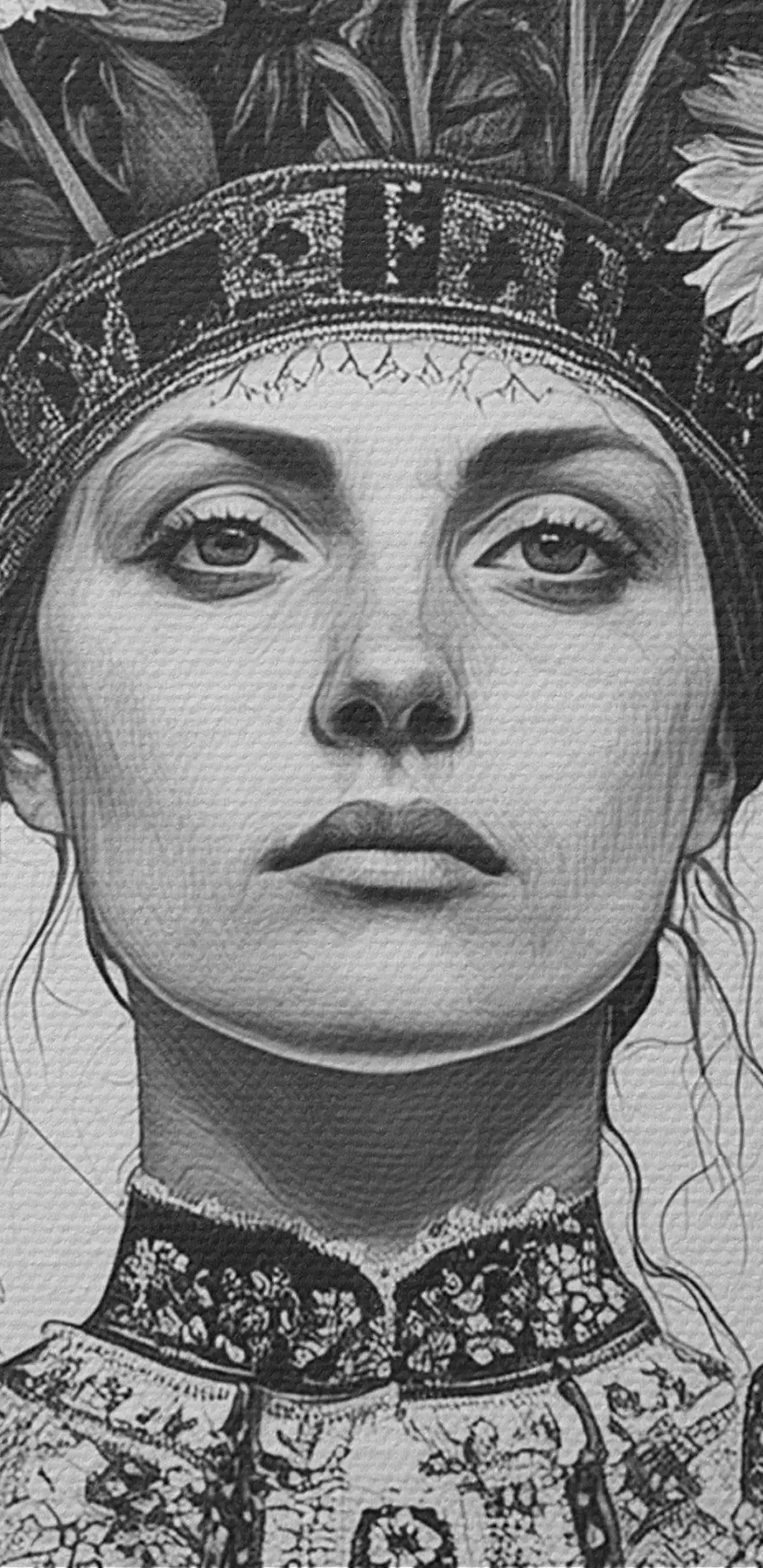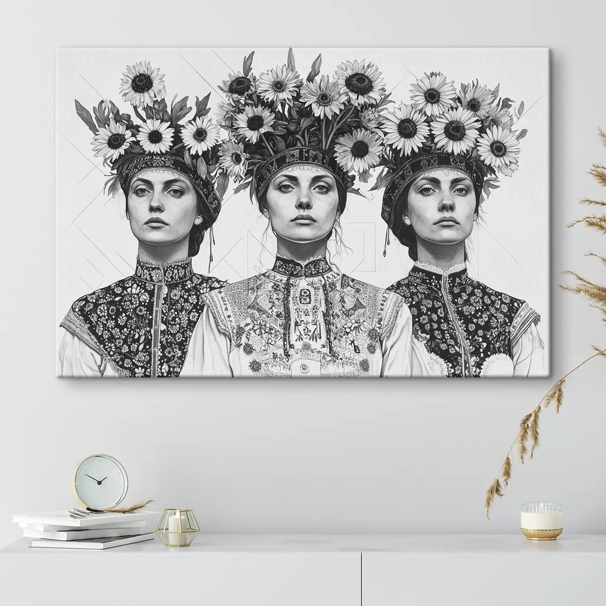 Wandbilder Ukrainische Frauen in ethnischen Schließungen mit Blumenkränzen Art. s42379