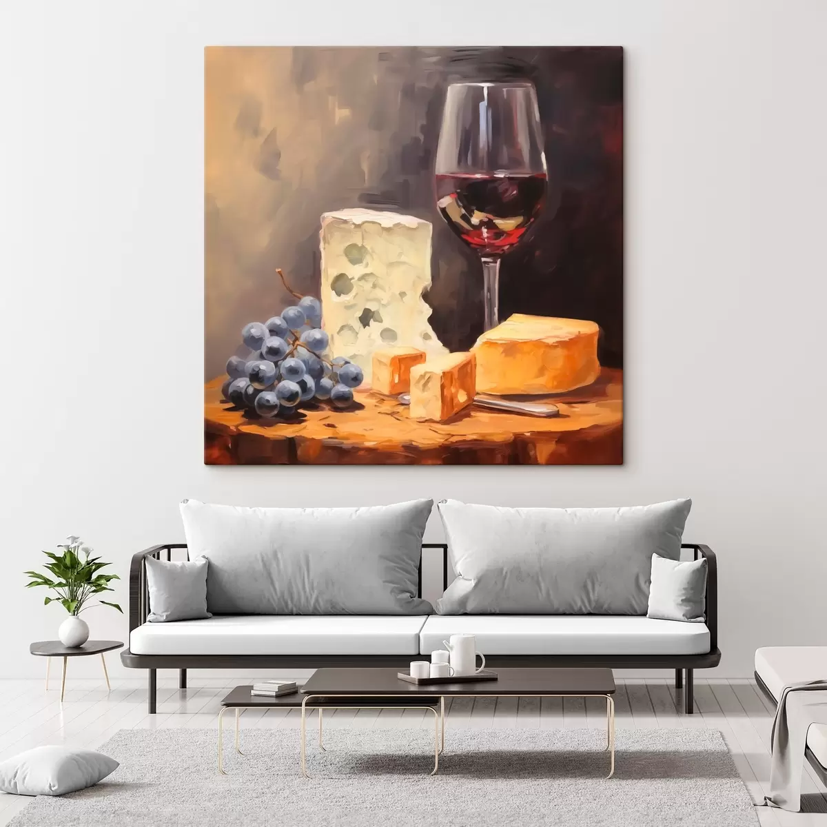 Wandbilder Glas Rotwein und Käse Nachahmung Malerei Art. s42415