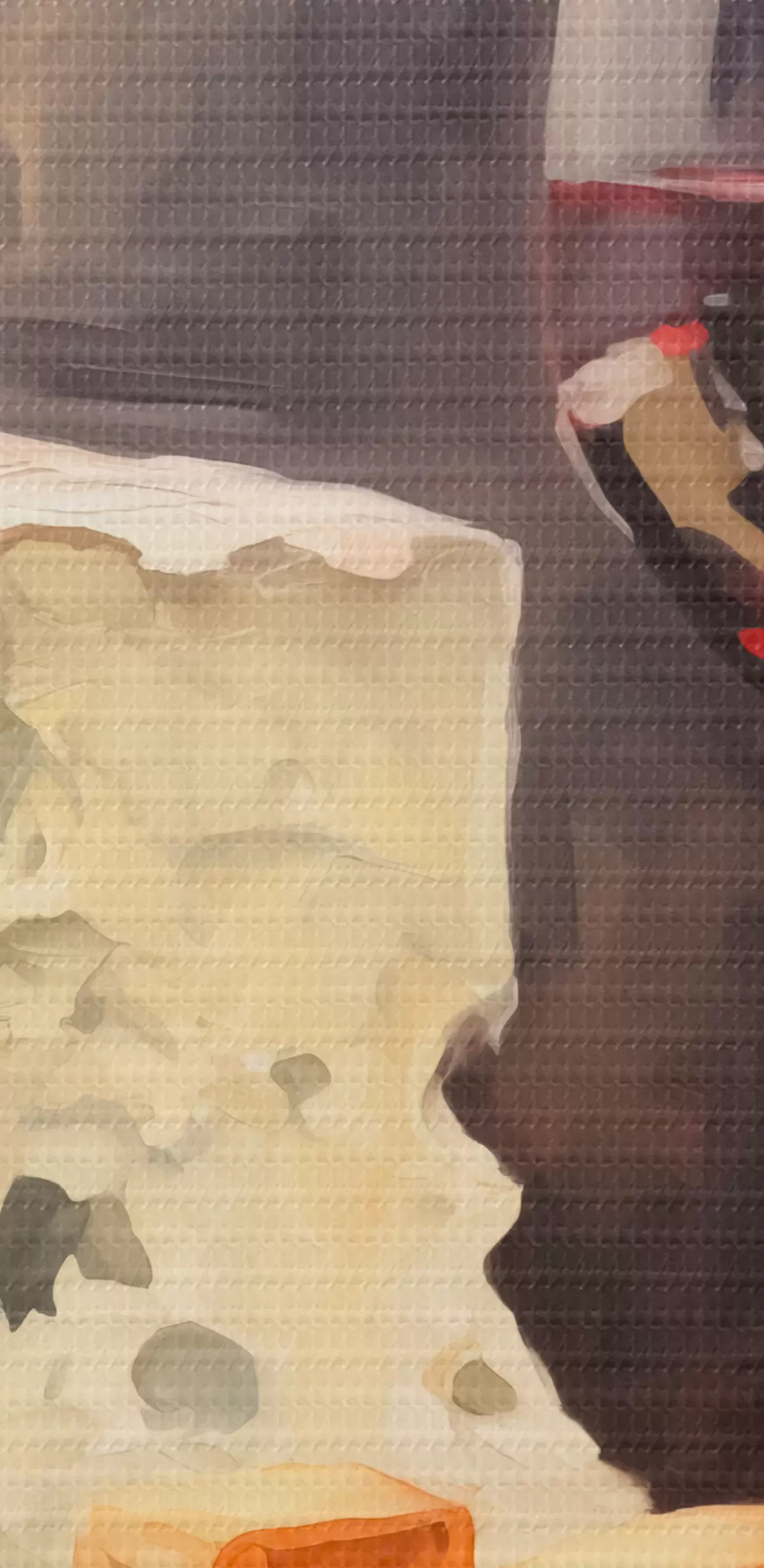 Das Bild kann vorsichtig mit einem trockenen, weichen Tuch oder Schwamm abgewischt werden; es wird nicht empfohlen, feuchte Produkte zu verwenden. Die Verwendung eines feuchten Schwamms ist nur zulässig, wenn das Bild lackiert wurde.