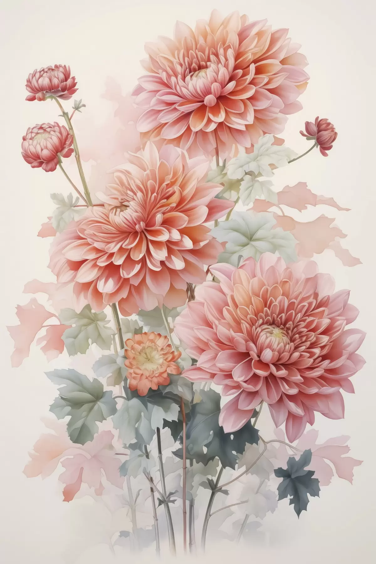 Wandbilder Chrysanthemen Nachahmung von Aquarell s42416