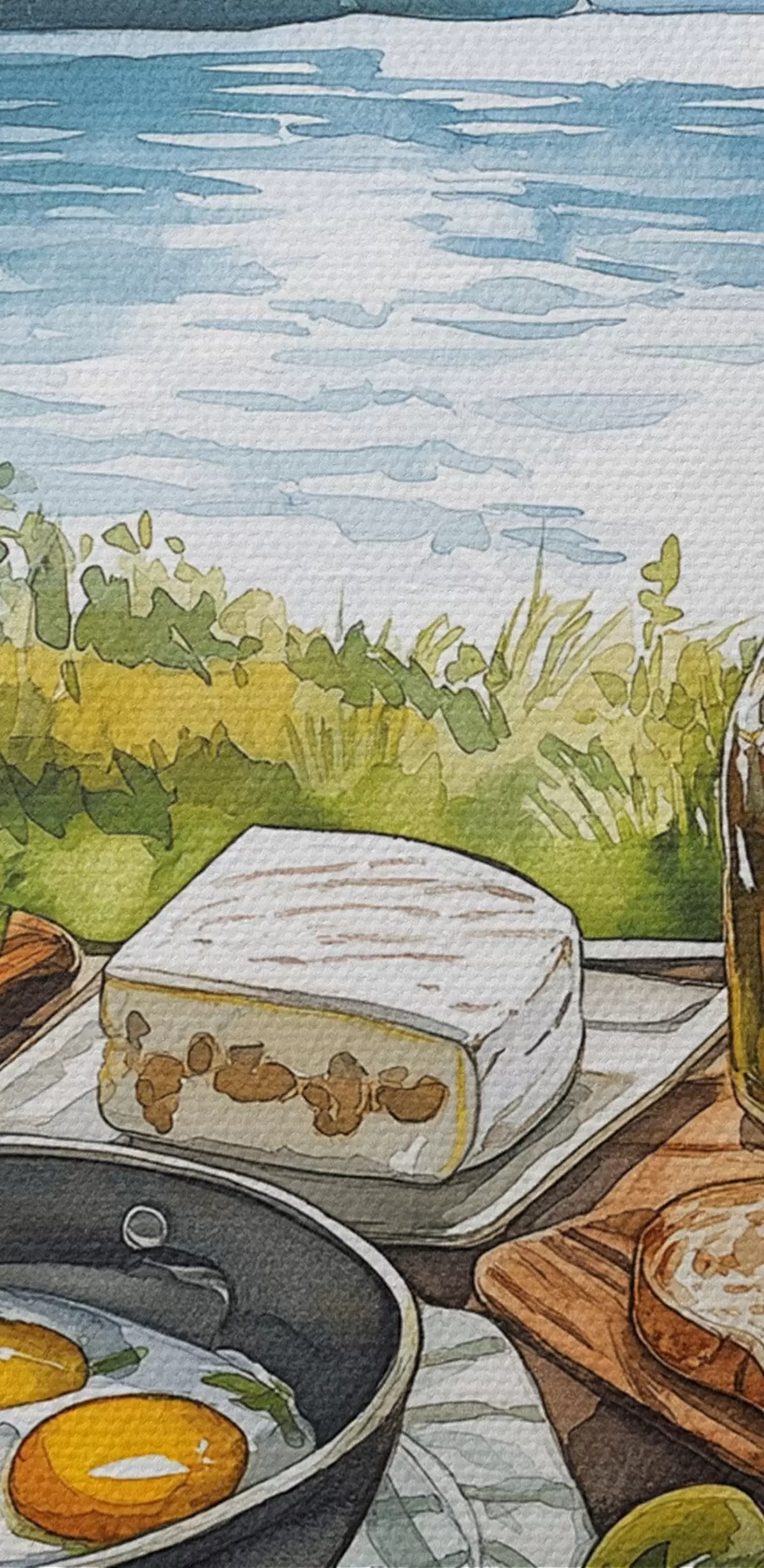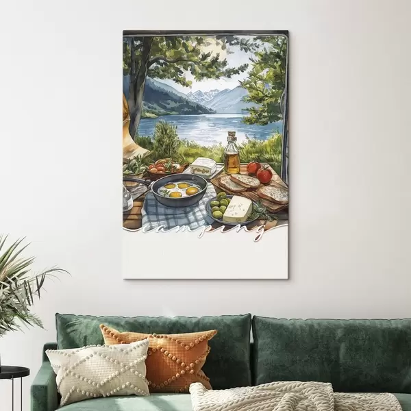 Wandbilder Camping-Ästhetik, Aquarell-Stil, Sommer-See, Natur, Essen s42428