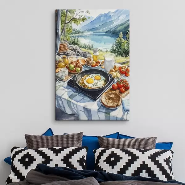 Wandbilder Ästhetisches Frühstück am See, Aquarellstil s42432