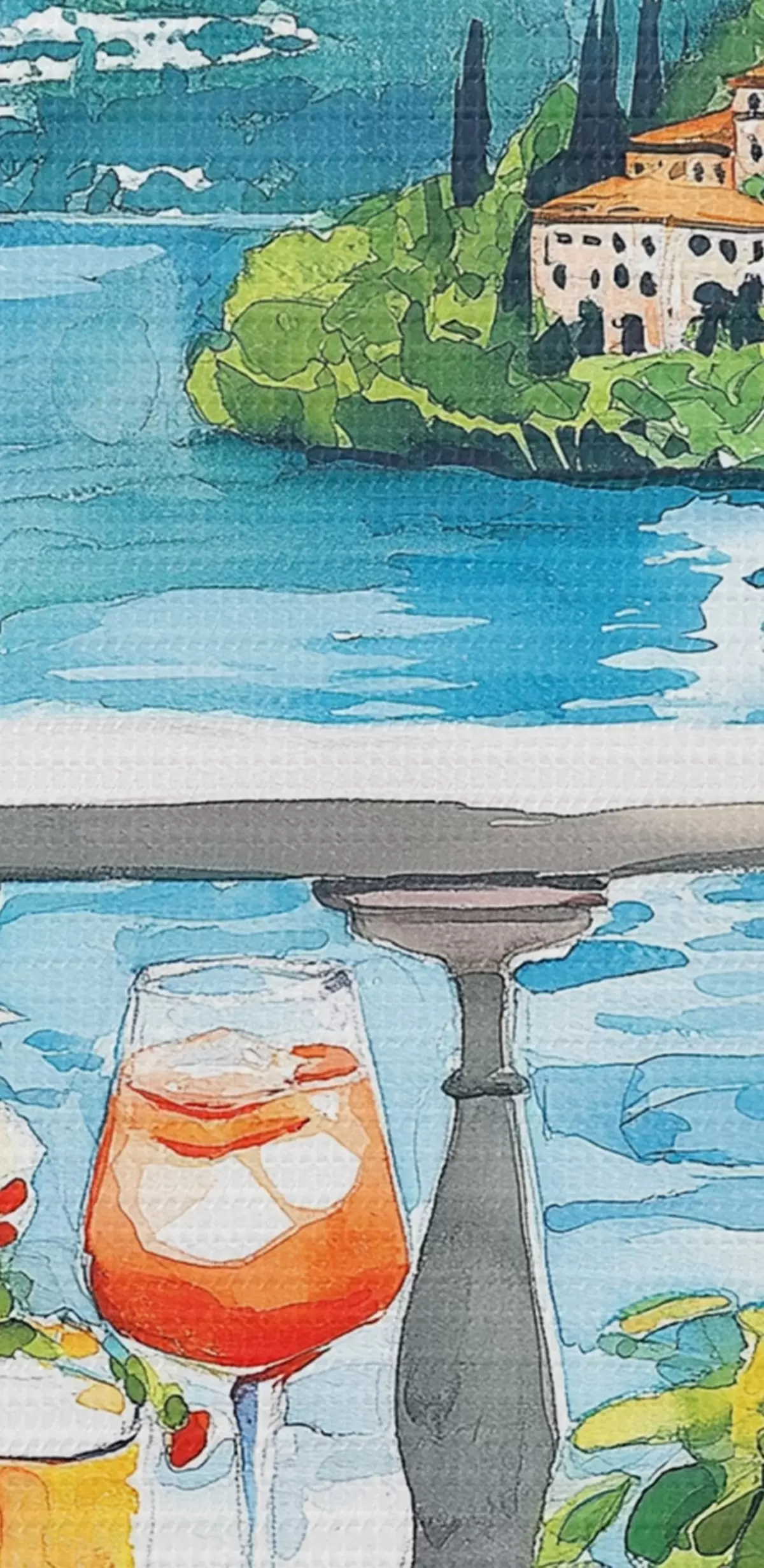 Wandbilder Italien Ästhetik, Aquarellstil, Pizza und Cocktails, Berge Art. s42434