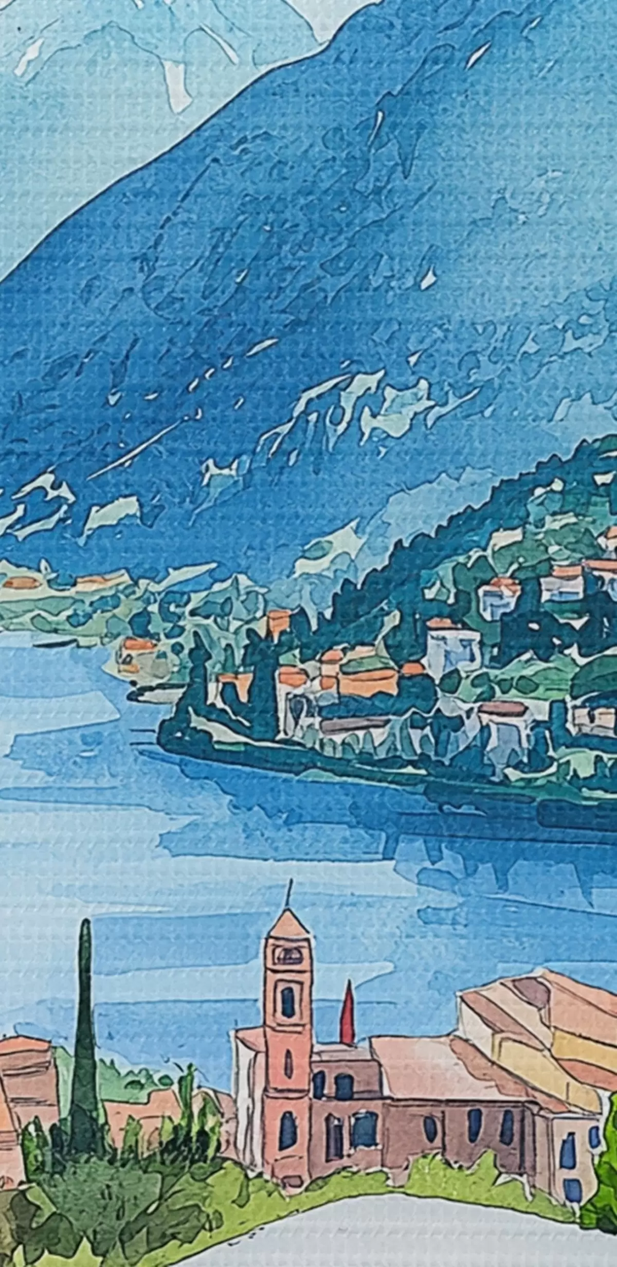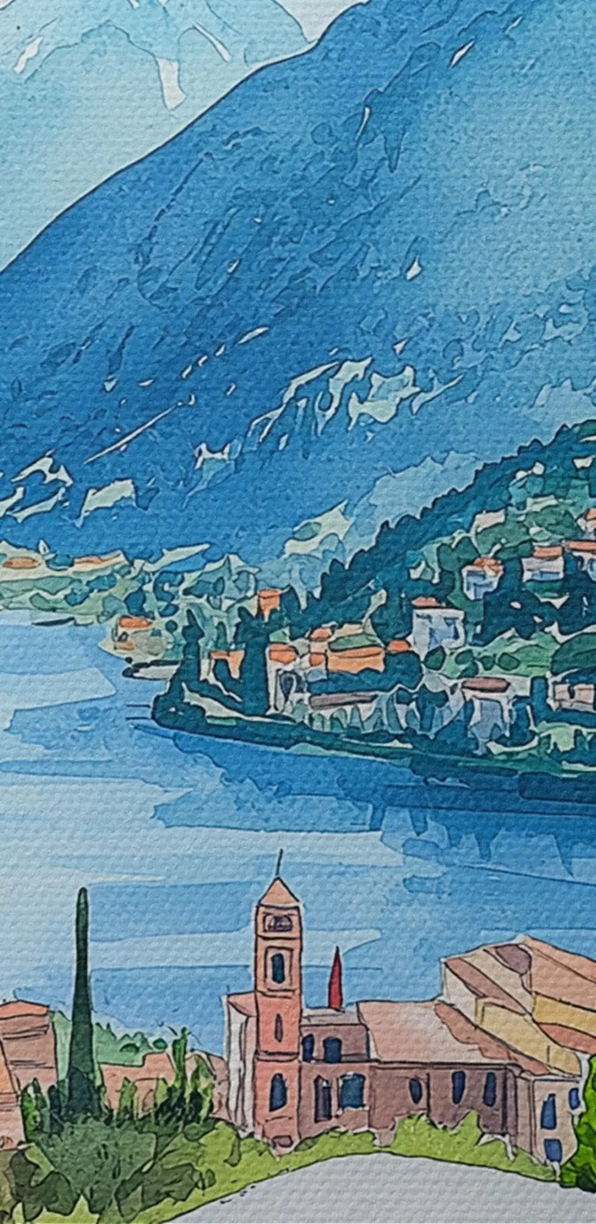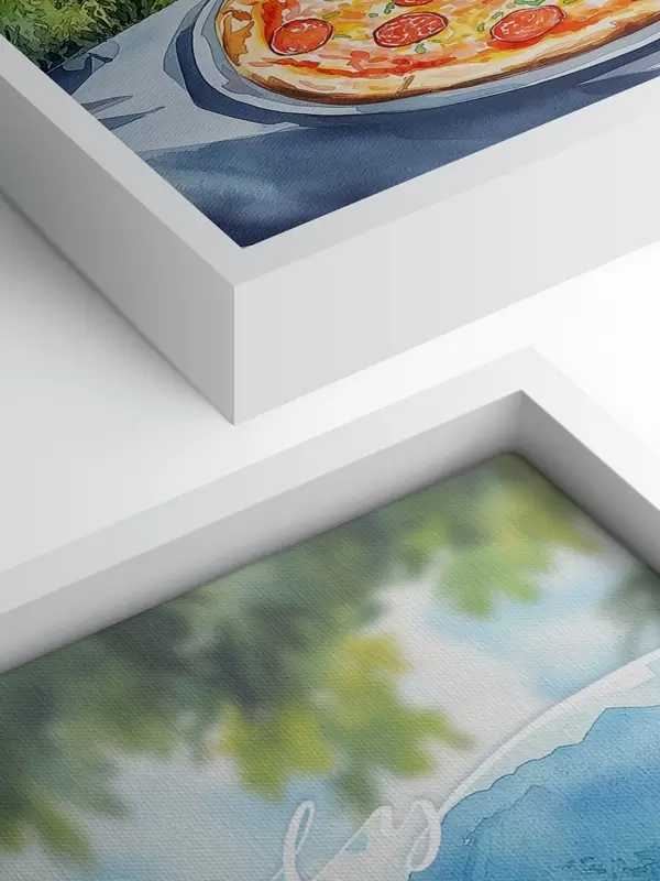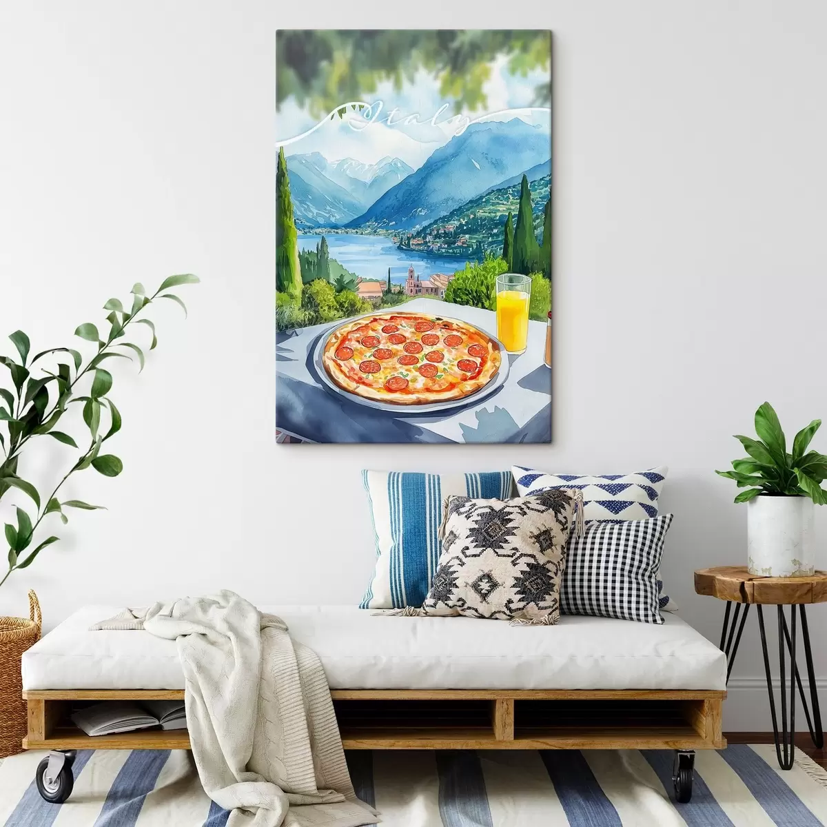 Wandbilder Aquarell-Stil, Italien, Pizza, alte Stadt, Berge Landschaft Art. s42435