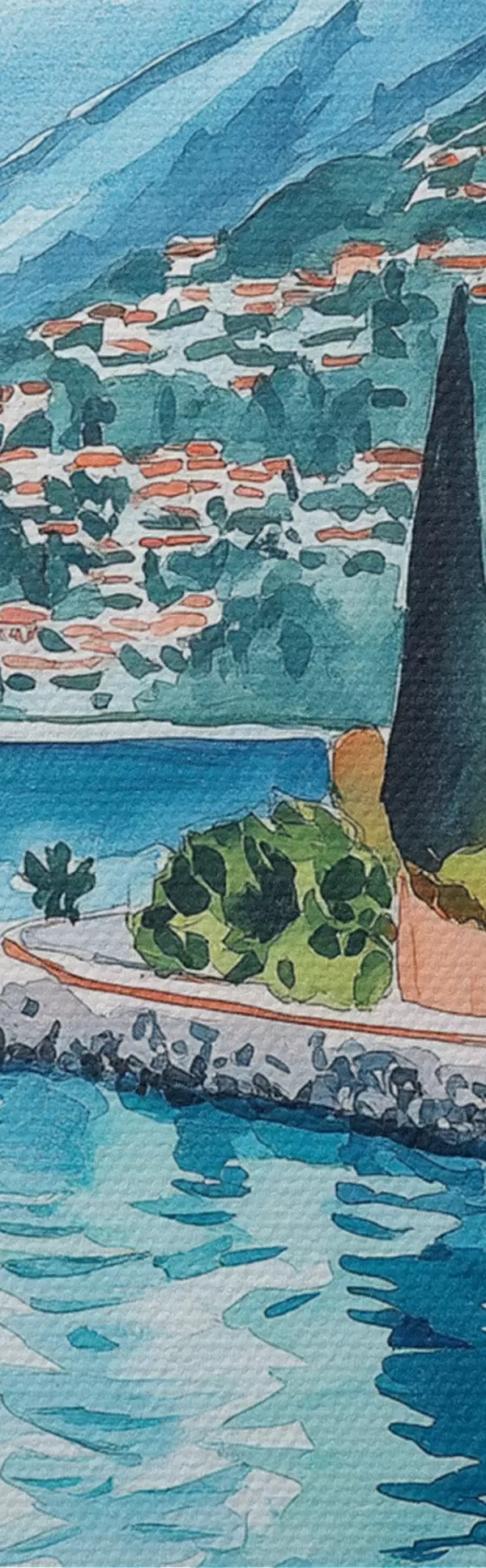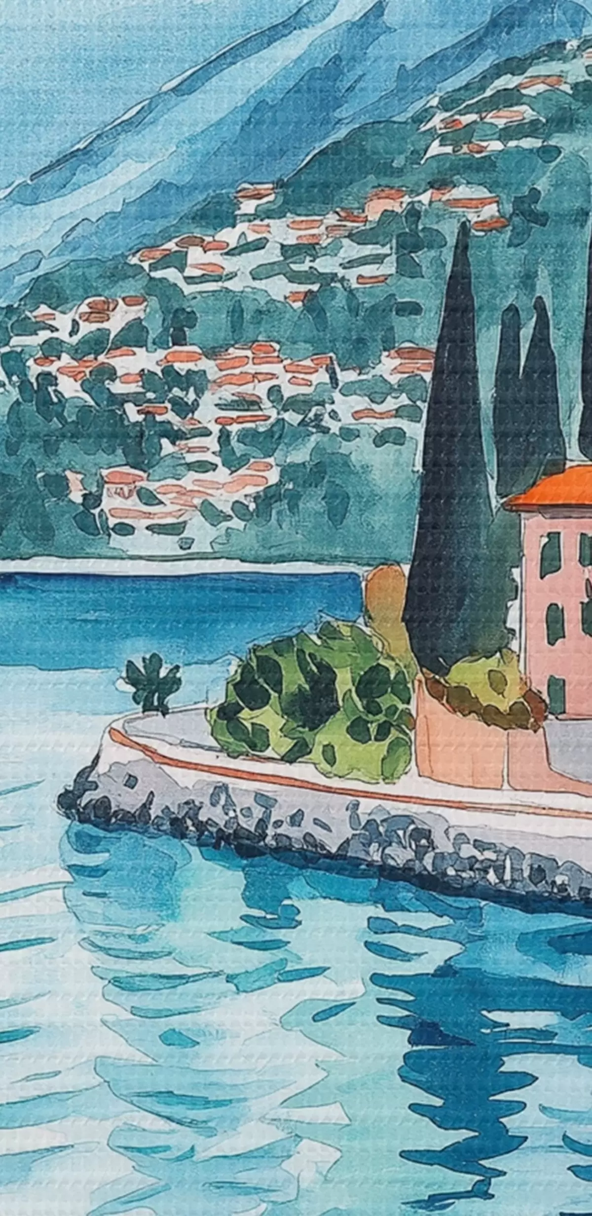 Wandbilder Comer See, Italien, Aquarellstil, Pizza, Cocktails, Altstadt, Berge Art. s42437