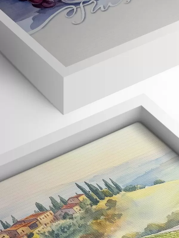 Drei Materialtypen stehen zur Verfügung: Economic Canvas - ein dichtes und haltbares Material für den Digitaldruck, identisch mit Malerleinwand, wasserfeste Oberfläche, realistische Wiedergabe von Details, mittelkörniges Material. Premium Canvas - die Textur ähnelt der einer Malerleinwand (verwobene kleine Fäden). Weiche, detaillierte Wiedergabe des Bildes auf einer matten Oberfläche. Eco-Premium - hochwertiges Gewebe aus 100% Baumwolle. Dank der natürlichen Baumwollfasern ist das Material langlebig und verschleißfest. Hervorragende Farbwiedergabe und Detailtreue.