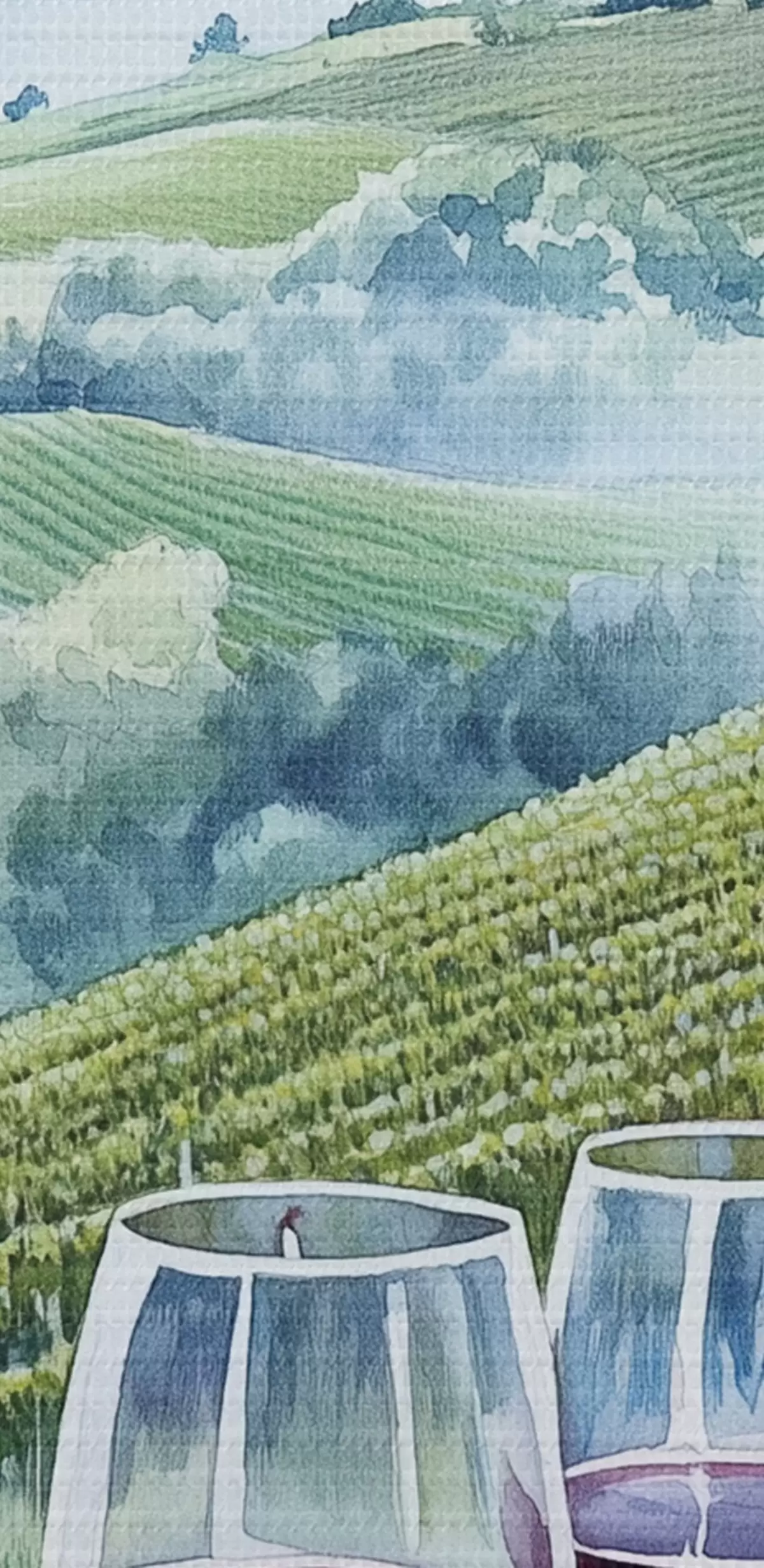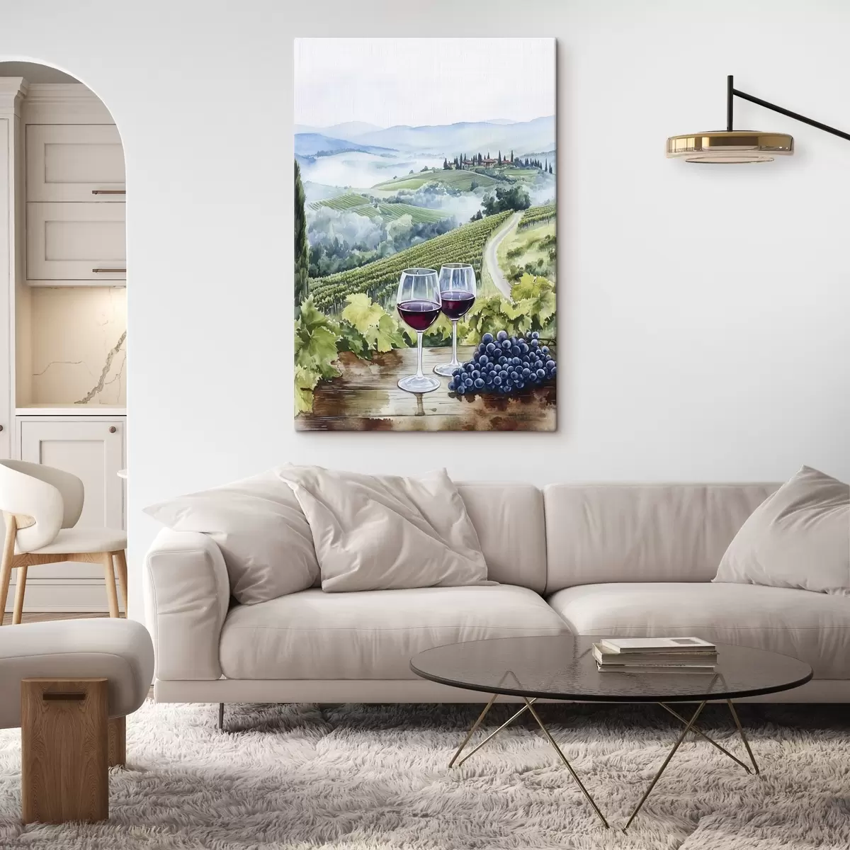 Wandbilder Landschaft der Toskana, Weinberge, Weingläser, Aquarellstil s42445