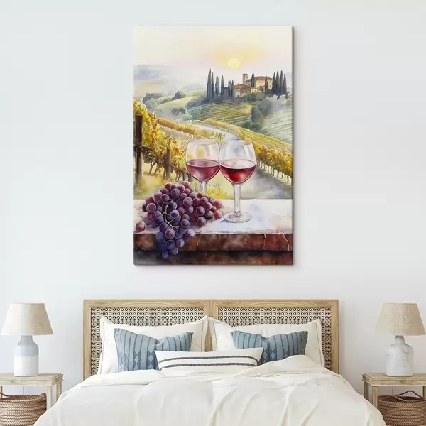 Wandbilder Sonnenuntergang in der Toskana, Weingut, alte Architektur, Aquarellstil, Italien Art. s42446