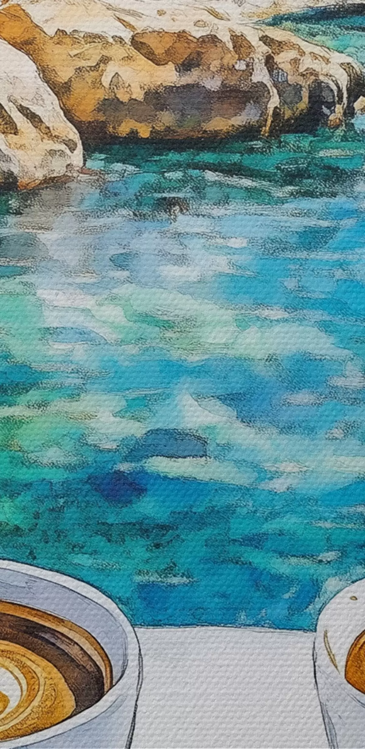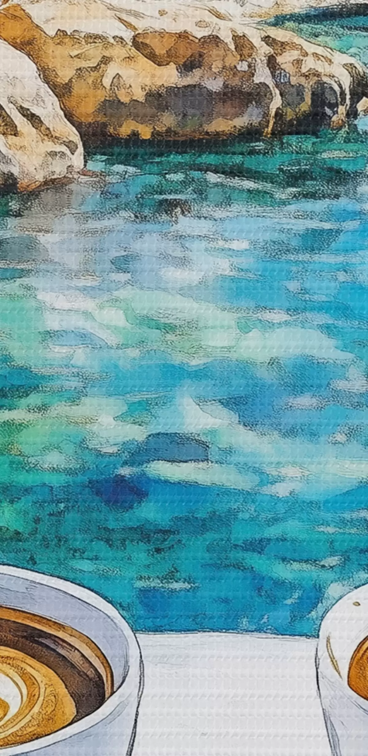 Wandbilder Griechenland Ästhetik, Tassen Kaffee, blaues Meer, alte Stadt, Reisen s42447