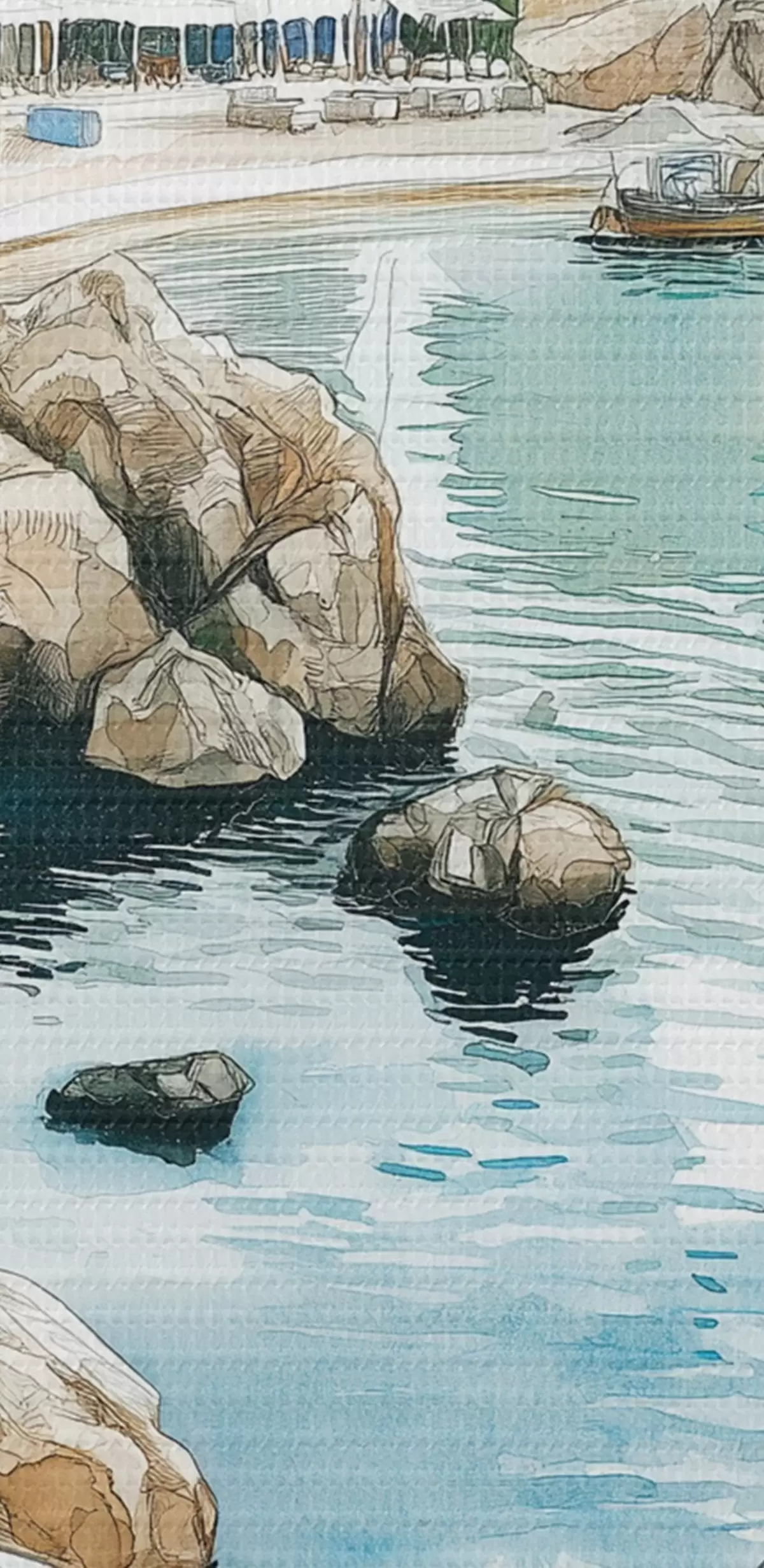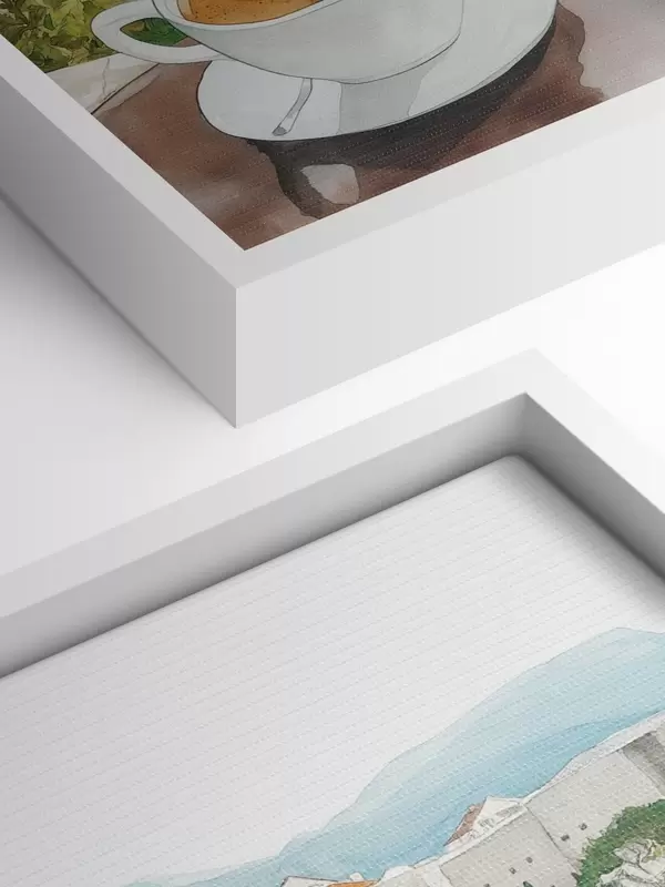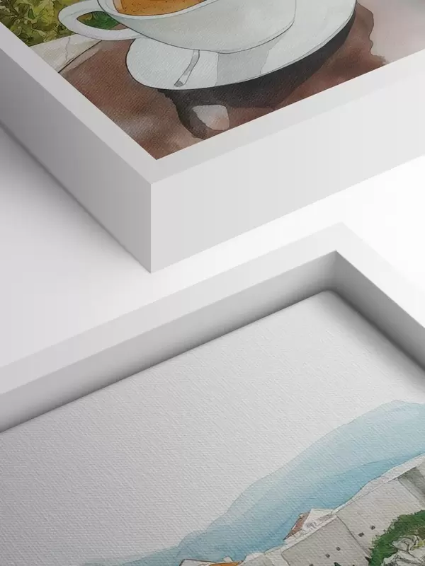 Wandbilder Tassen Kaffee am Meer, Aquarellstil, Kroatien Art. s42448