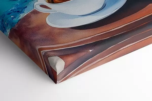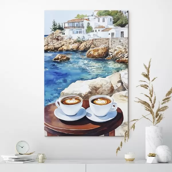 Wandbilder Aquarell Seeseite mit Tassen Kaffee, Sommer Art. s42449
