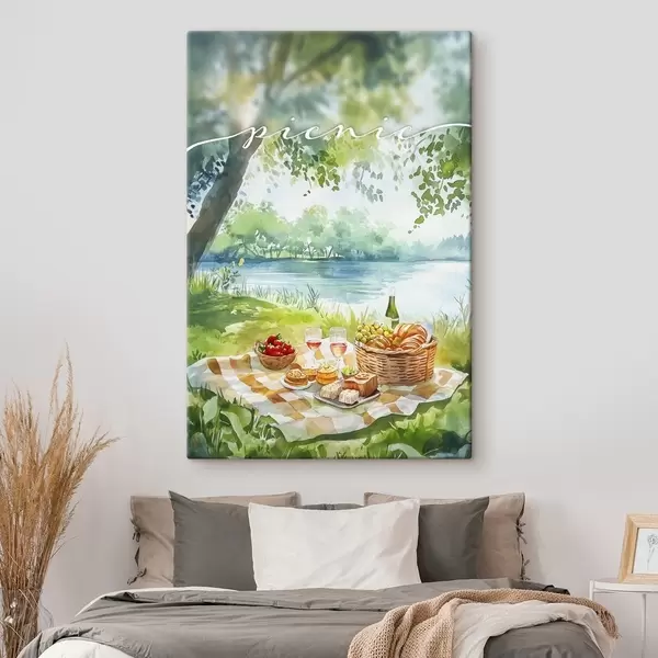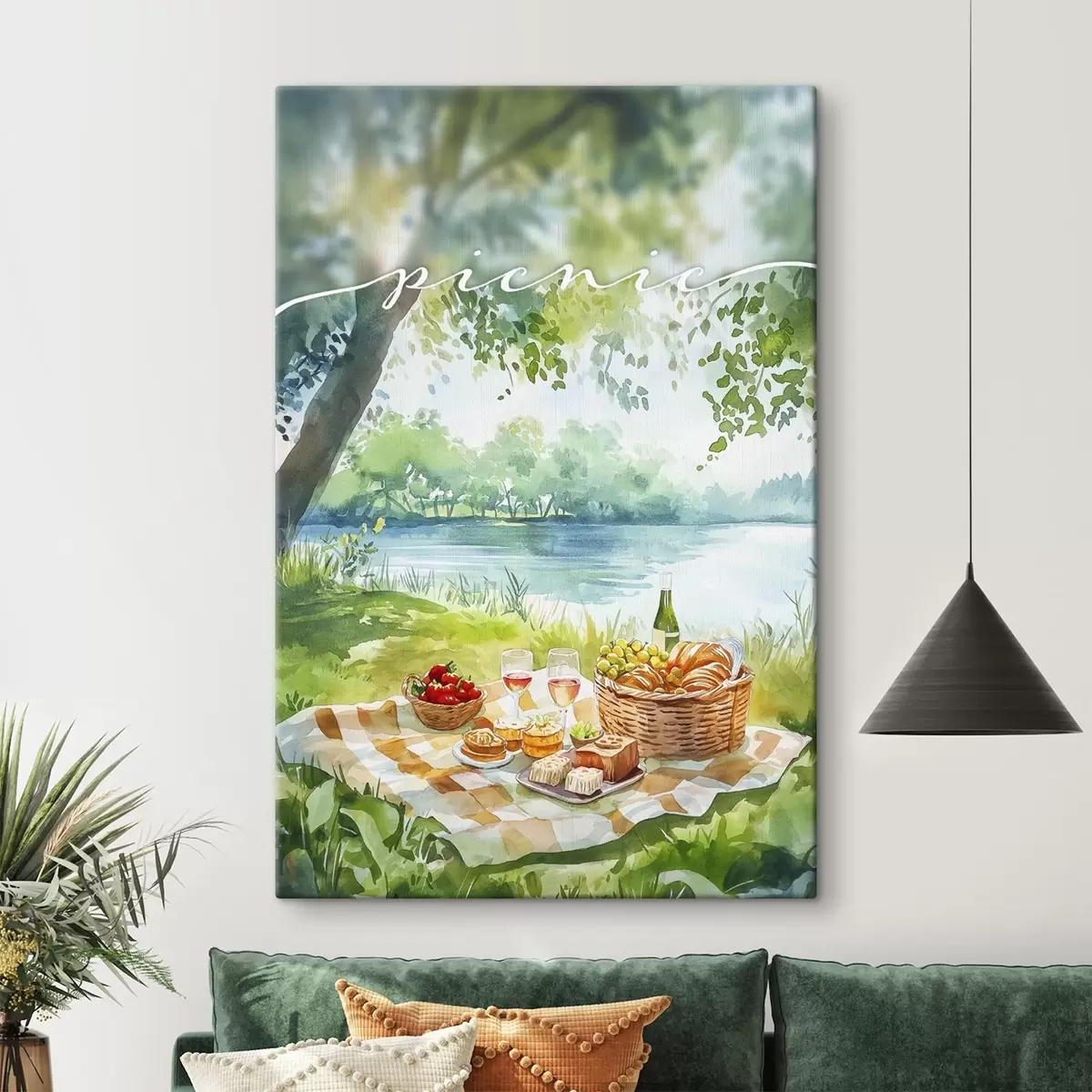 Wandbilder Picknick-Ästhetik, Sommer Natur, See, romantisch, Aquarell-Stil Art. s42450