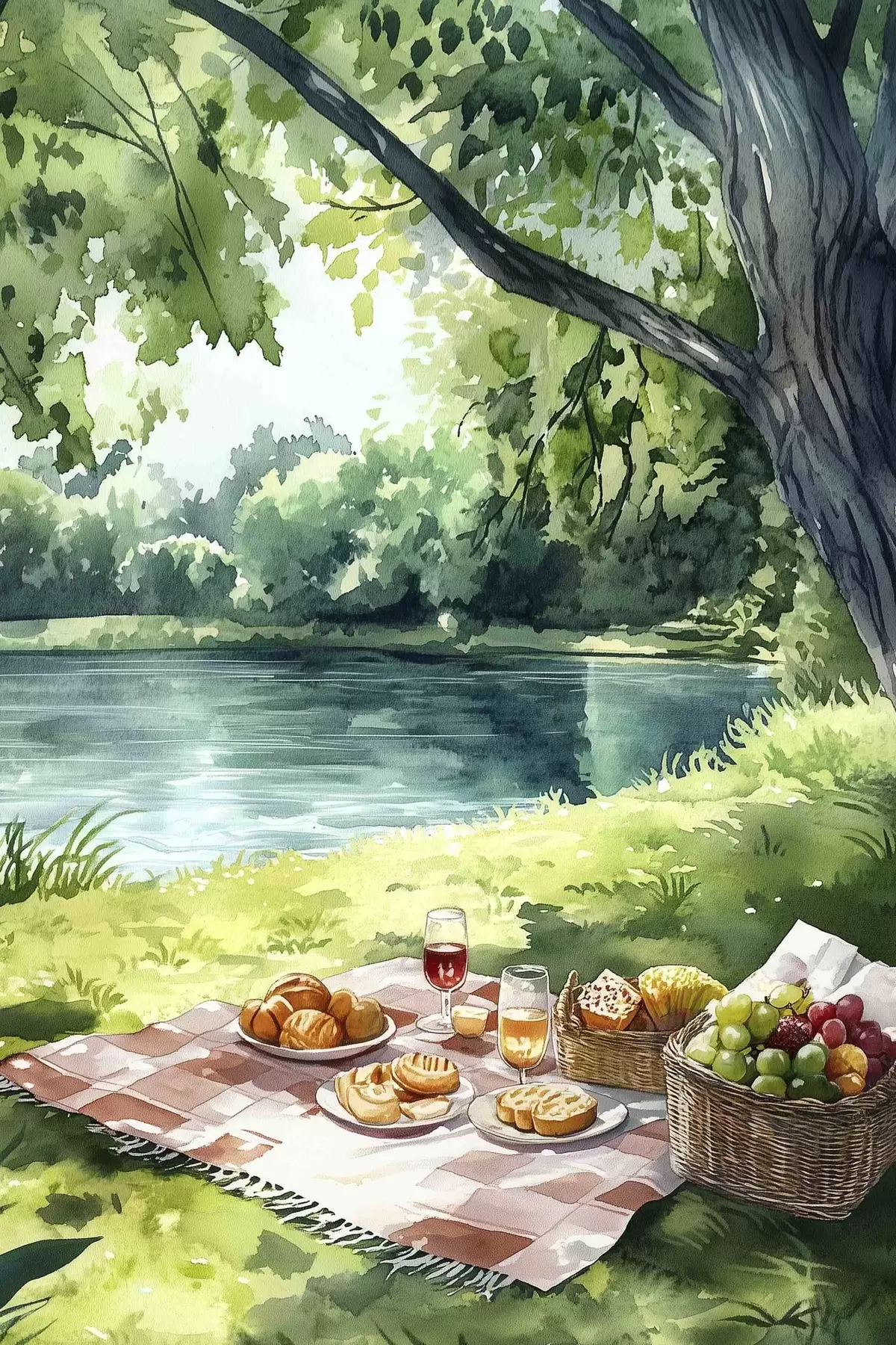 Wandbilder Wunderschönes romantisches Picknick am sommerlichen See, Früchte, Grünzeug Art. s42451