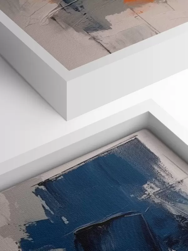 Wandbilder Abstrakte Komposition mit hellen orangefarbenen und blauen Akzenten Art. s42482