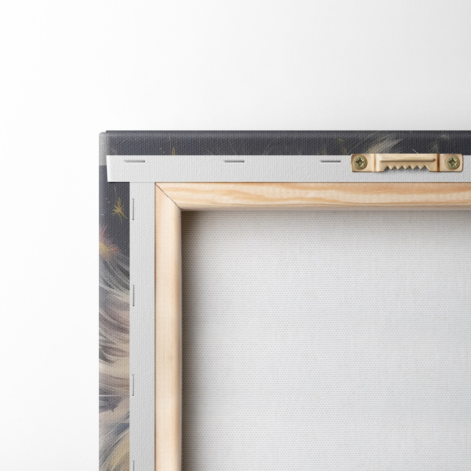 Um die Leinwand auf Keilrahmen zu spannen, ohne das Bild zu beschädigen, verwenden wir ein gespiegeltes Bild.