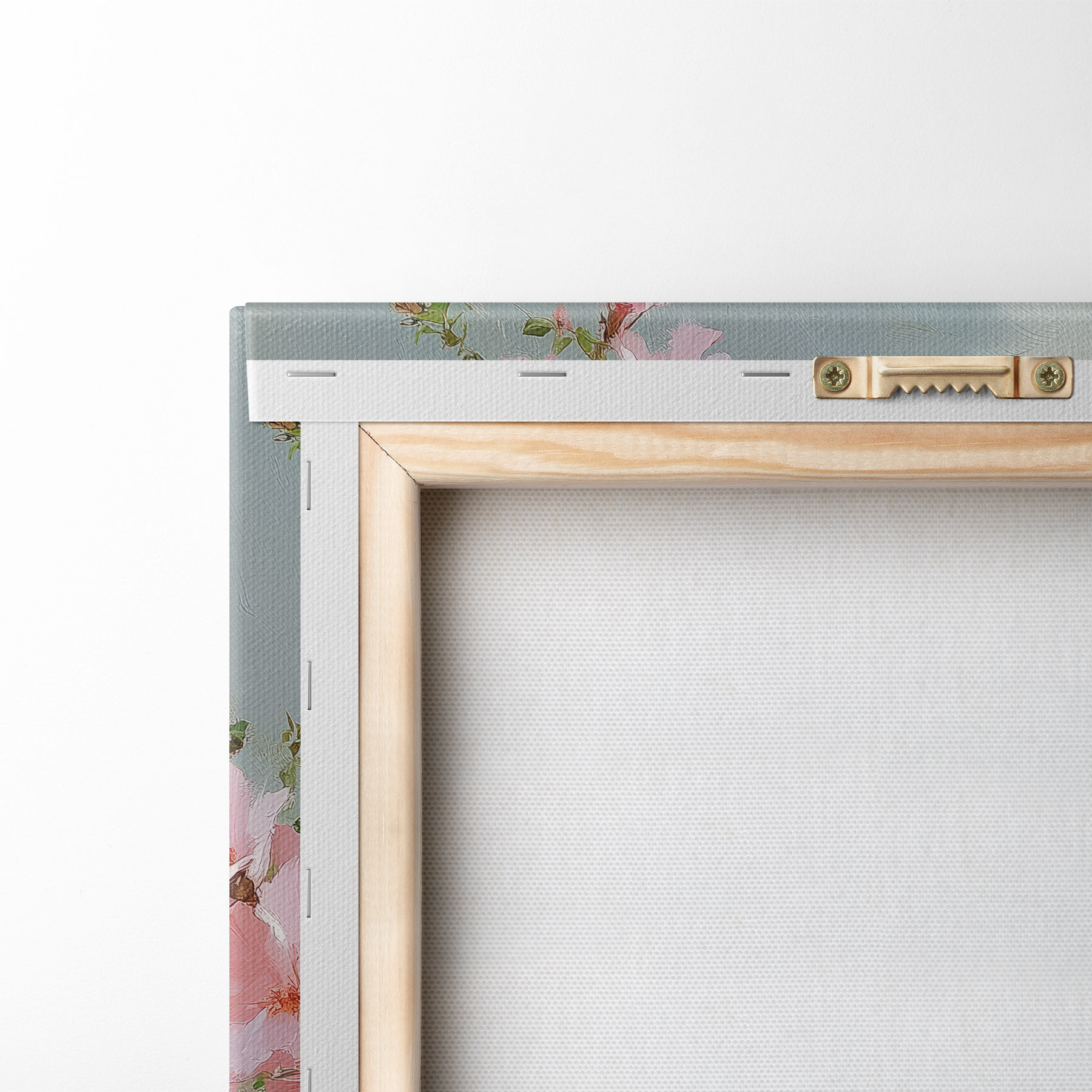 Um die Leinwand auf Keilrahmen zu spannen, ohne das Bild zu beschädigen, verwenden wir ein gespiegeltes Bild.