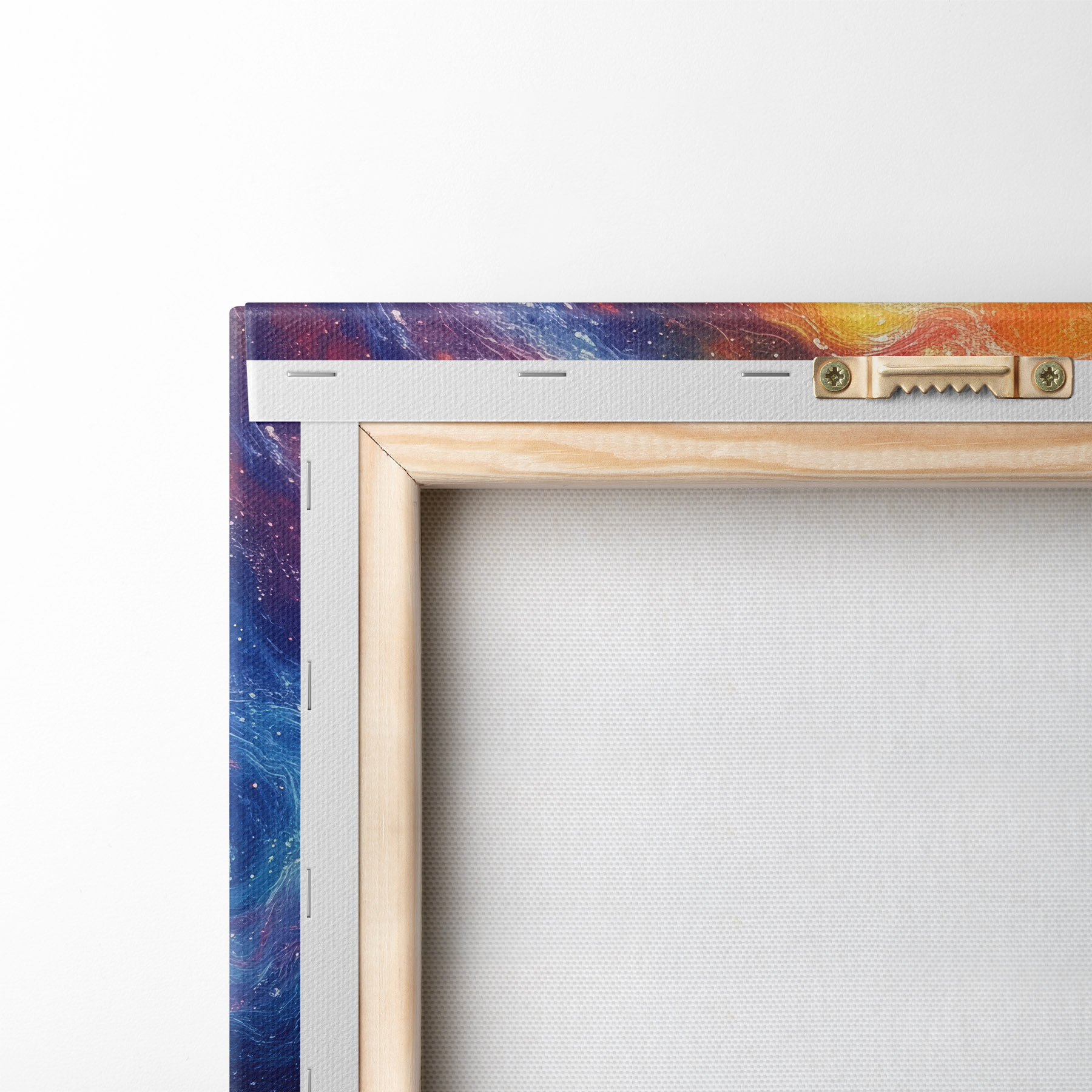Um die Leinwand auf Keilrahmen zu spannen, ohne das Bild zu beschädigen, verwenden wir ein gespiegeltes Bild.