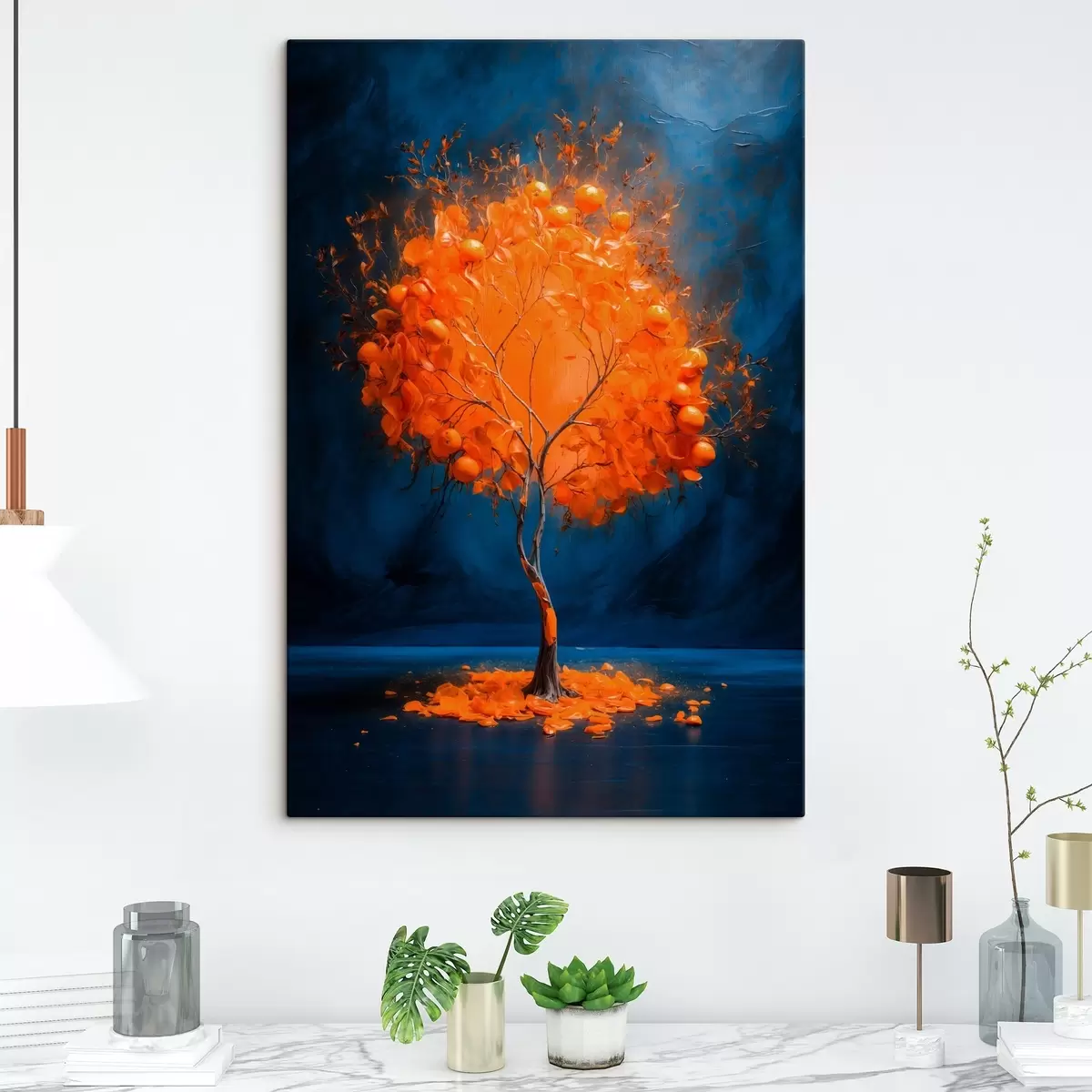 Wandbilder Orange Baum auf blauem Hintergrund in Acrylmalerei Stil s42525