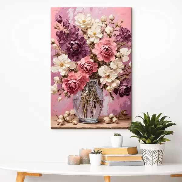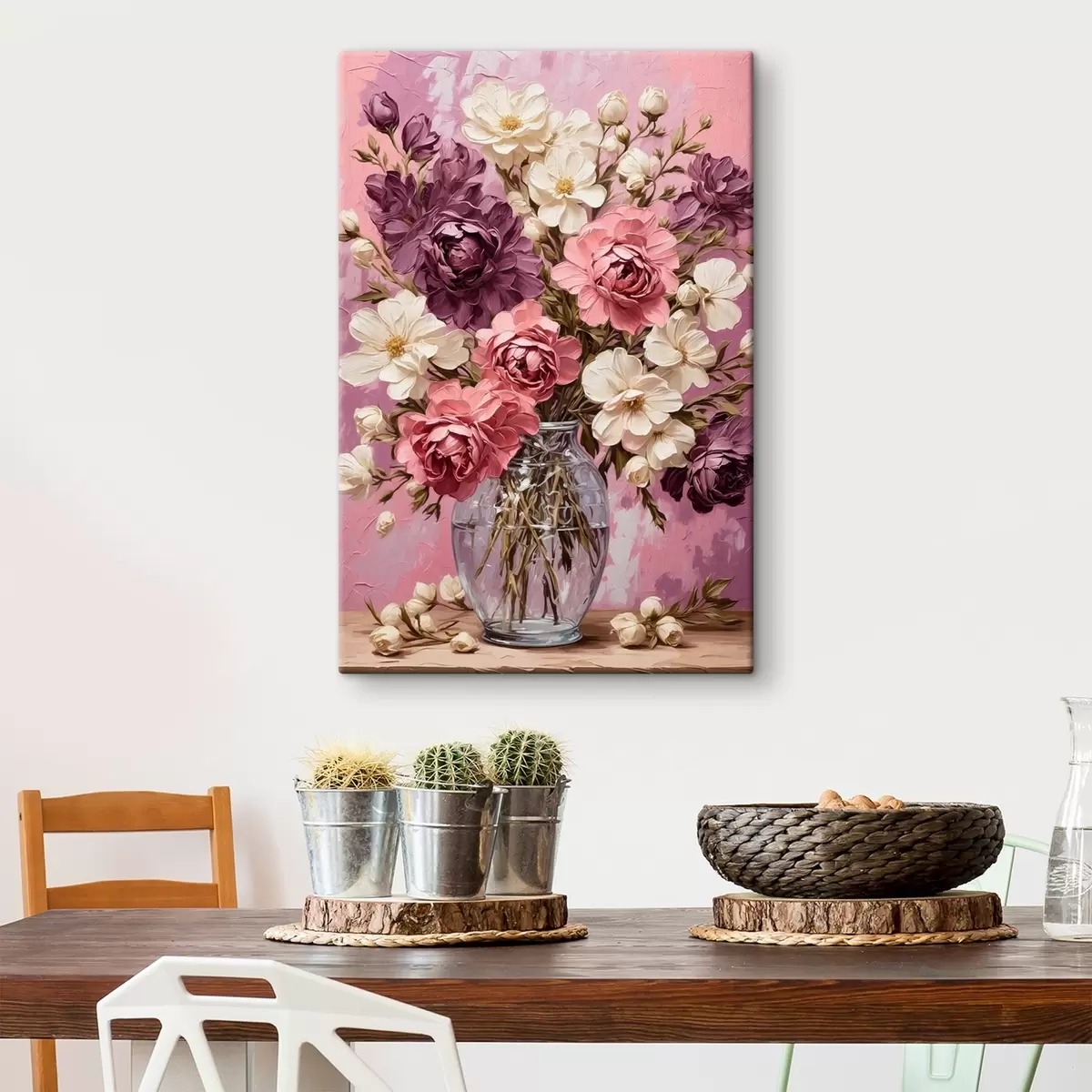 Wandbilder Blumen in transparenter Vase auf lila Hintergrund Art. s42535