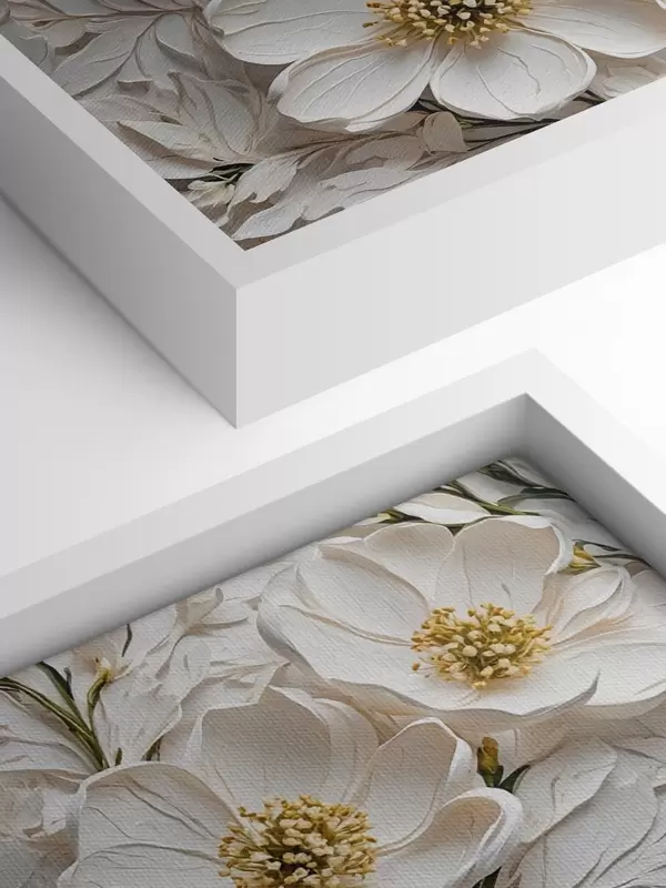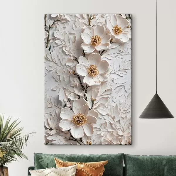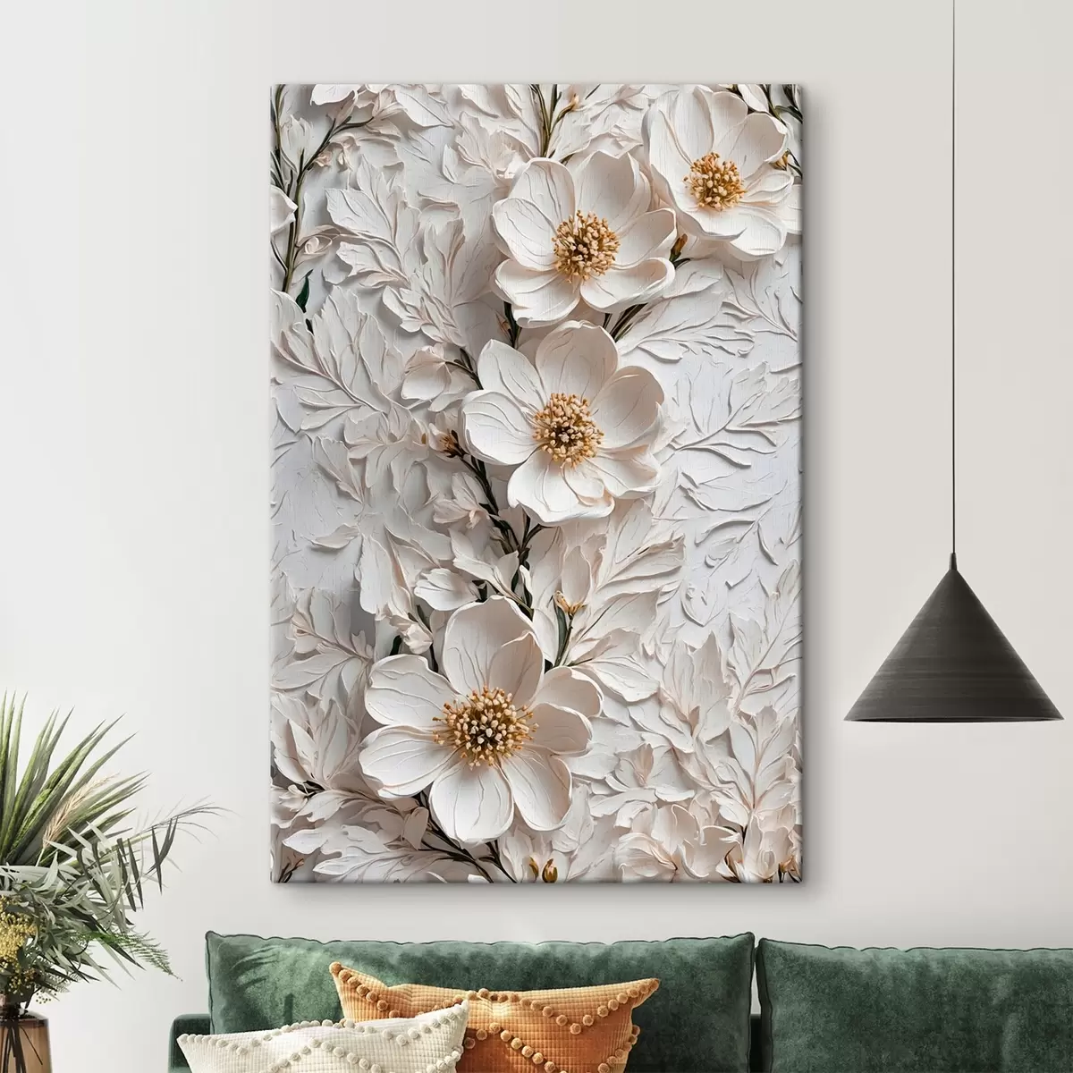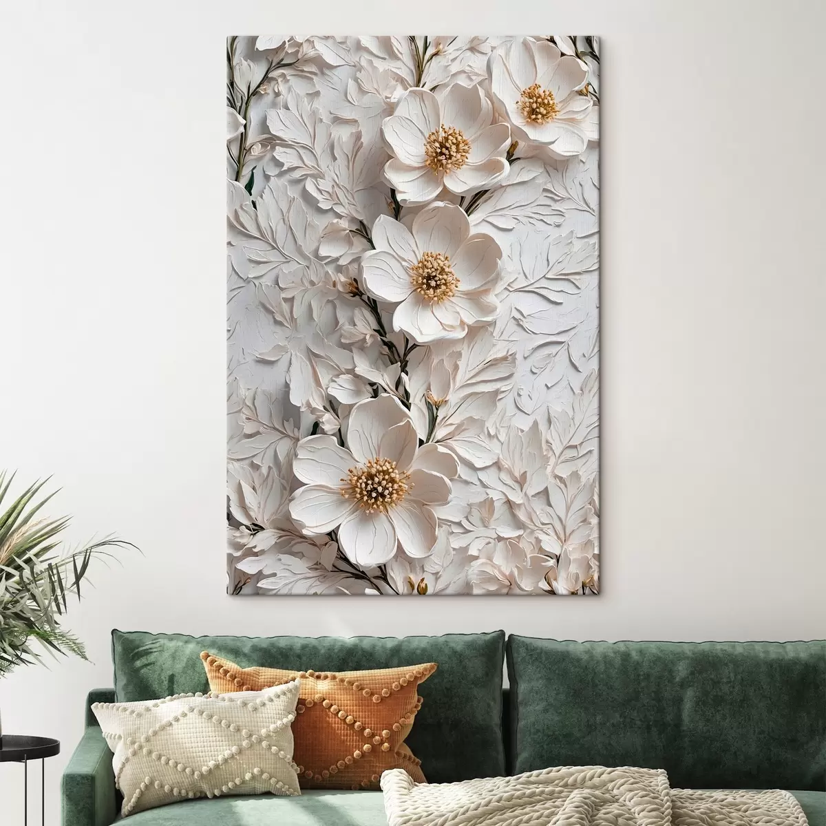 Wandbilder Weiße Blumen und Stängel im Stil der Ölmalerei Art. s42546