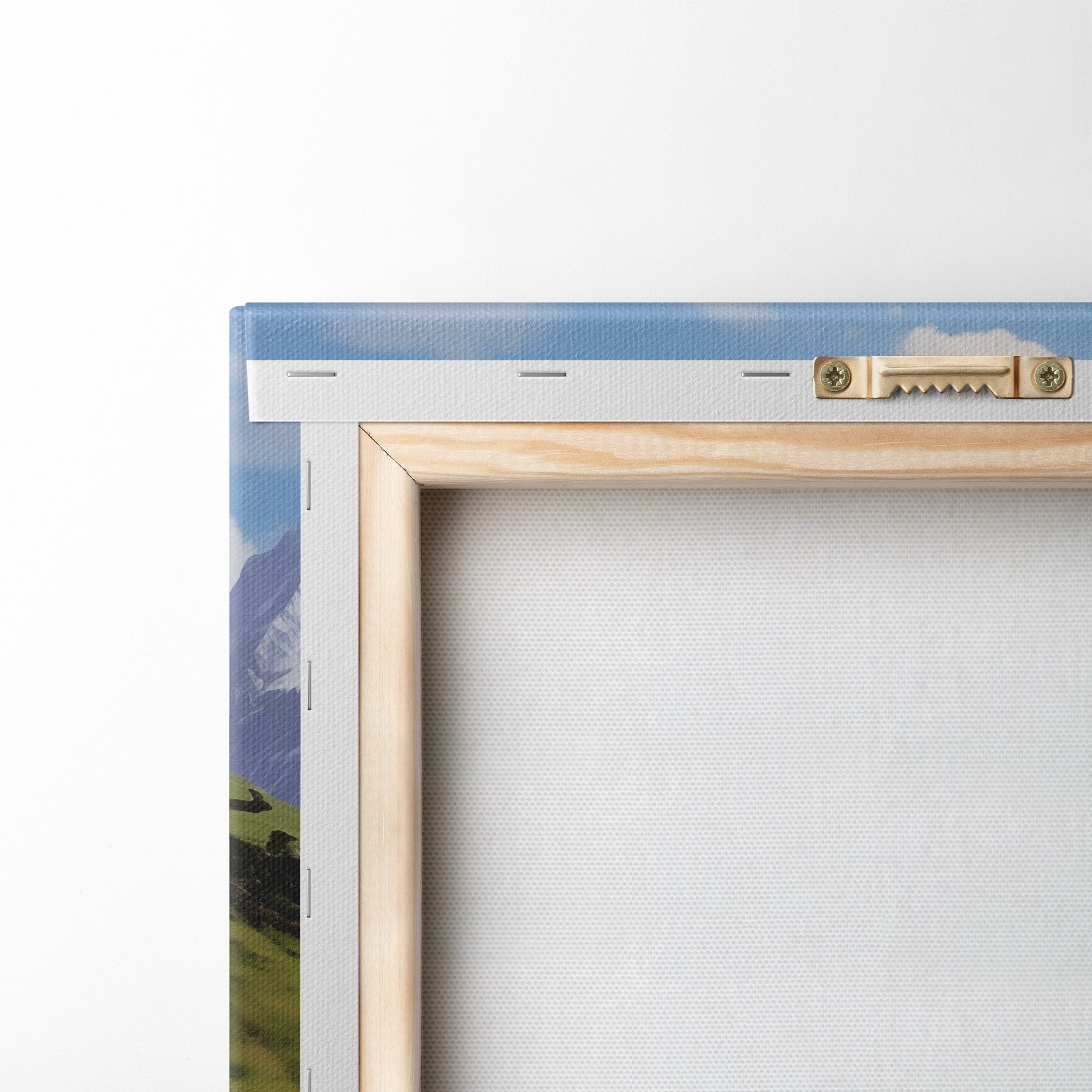 Sie können das Bild an Schrauben aufhängen. Dazu legen wir unseren Bildern Halterungen bei, mit denen Sie das Bild bequem aufhängen können.