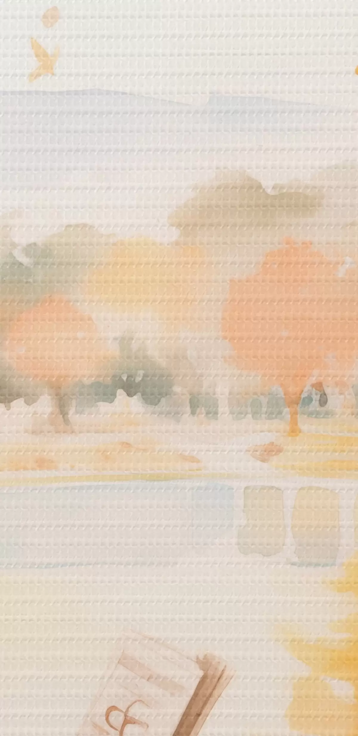Wandbilder Ein Mädchen liest ein Buch am offenen Fenster in einer herbstlichen Kulisse, mit hellen Bäumen im Hintergrund und einer Tasse Tee in der Nähe. s42572