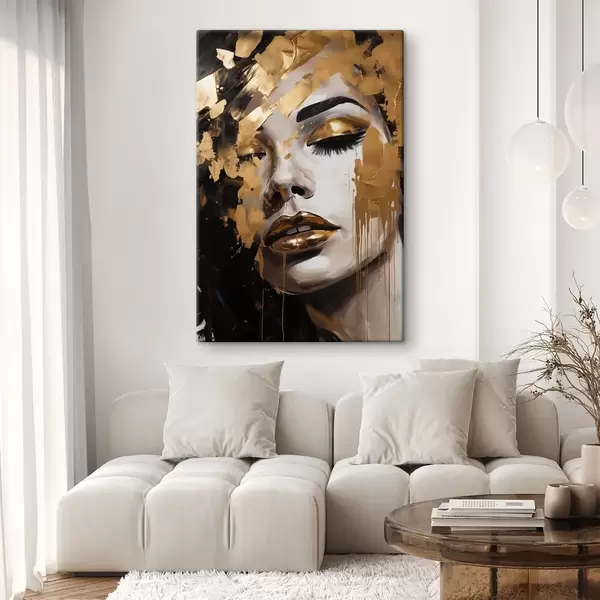 Wandbilder Ein abstraktes Porträt einer Frau mit reichen Pinselstrichen in warmen Tönen, die ein lebendiges und dramatisches Bild schaffen s42619