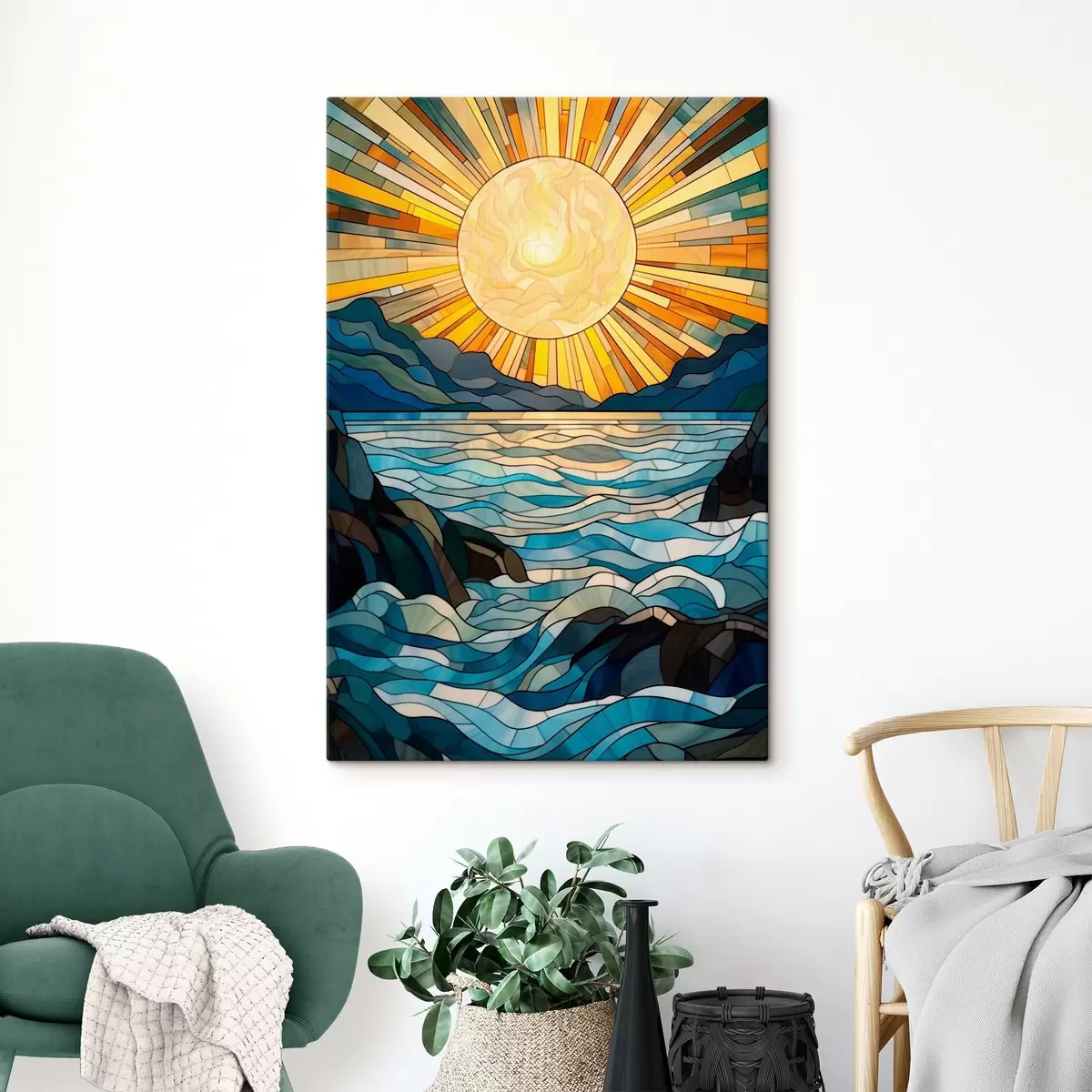Wandbilder Sonne und Wellen im Stil der Glasmalerei Art. s42654